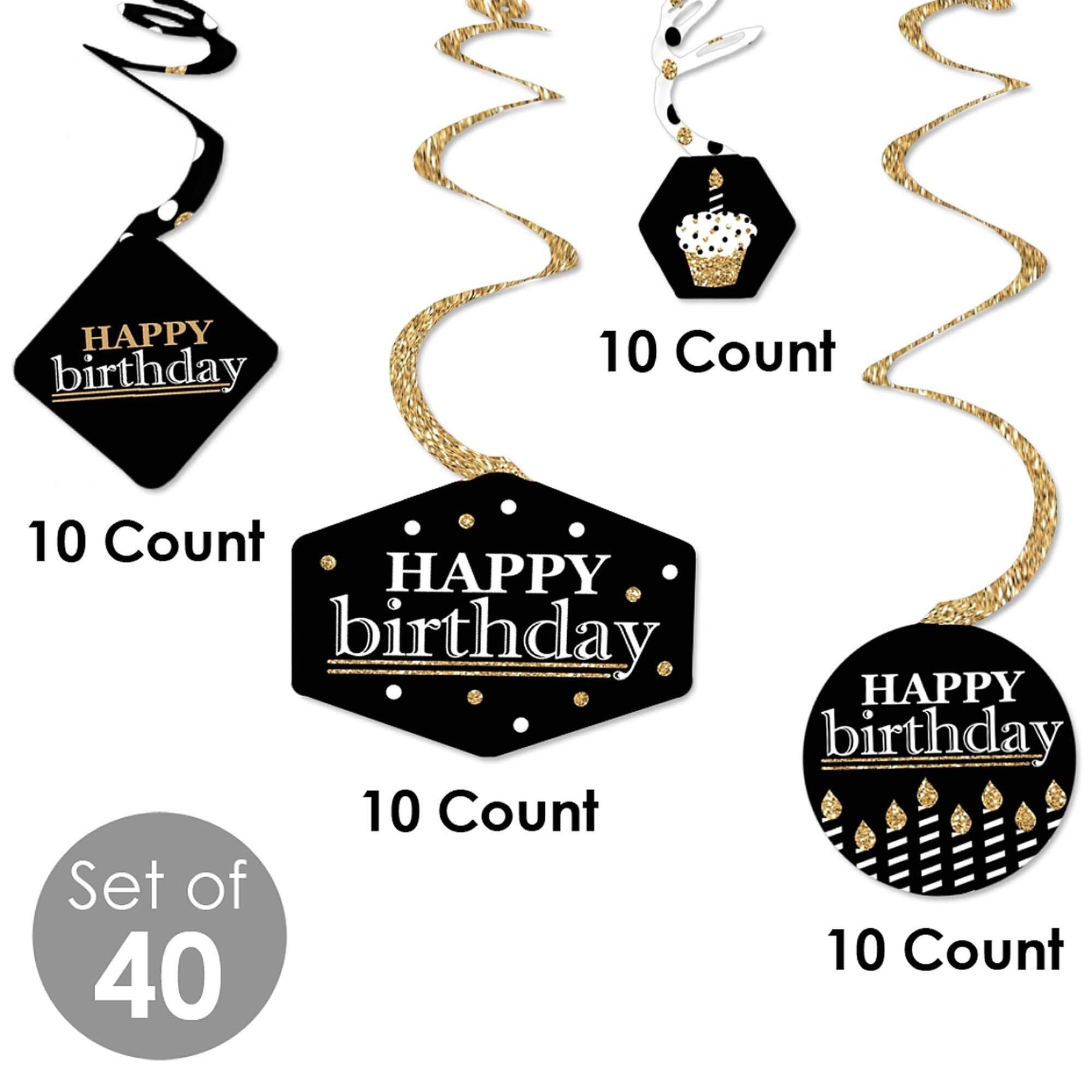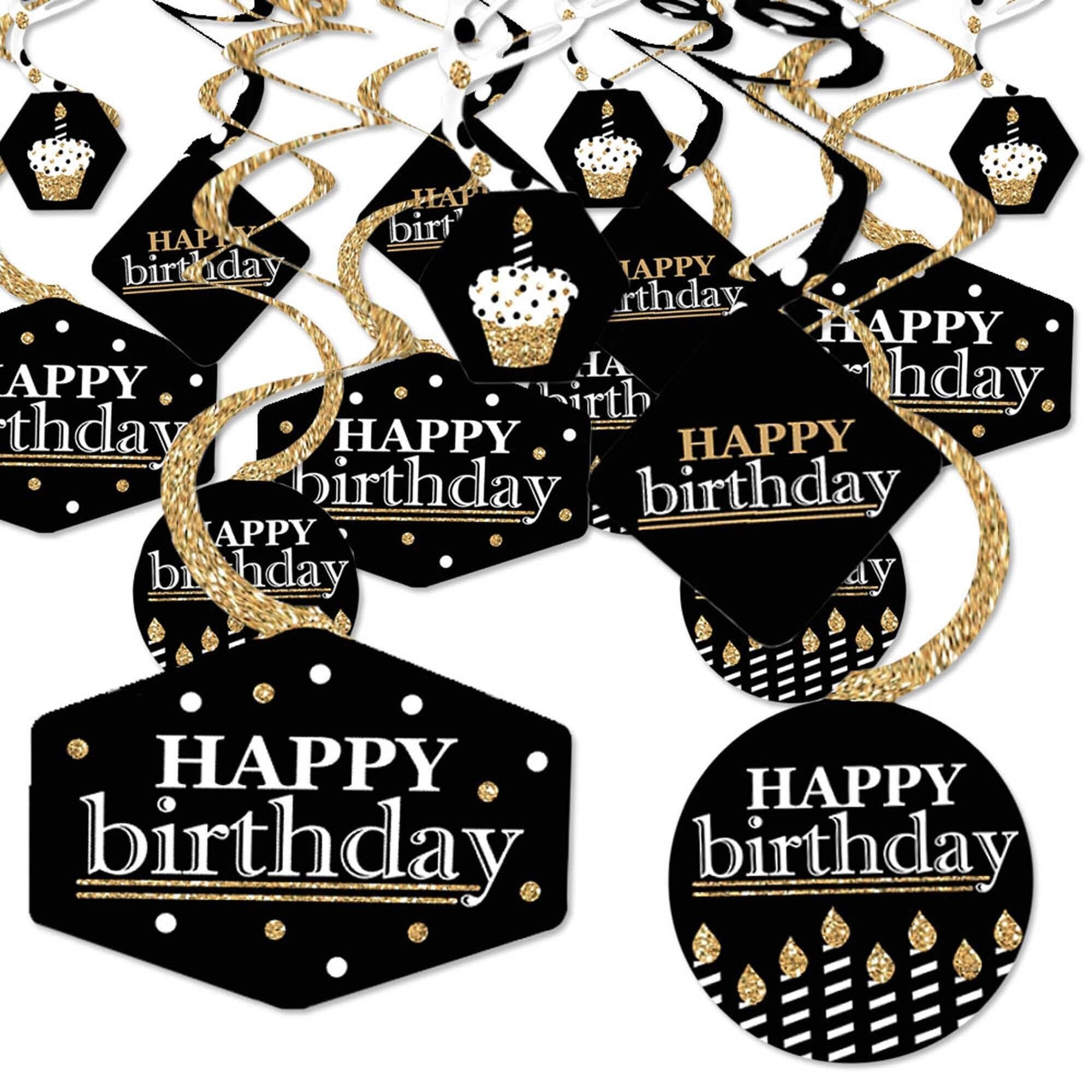 Adult Happy Birthday - Gold - Birthday Party Hanging Decor - Party Decoration Swirls - Set of 40: