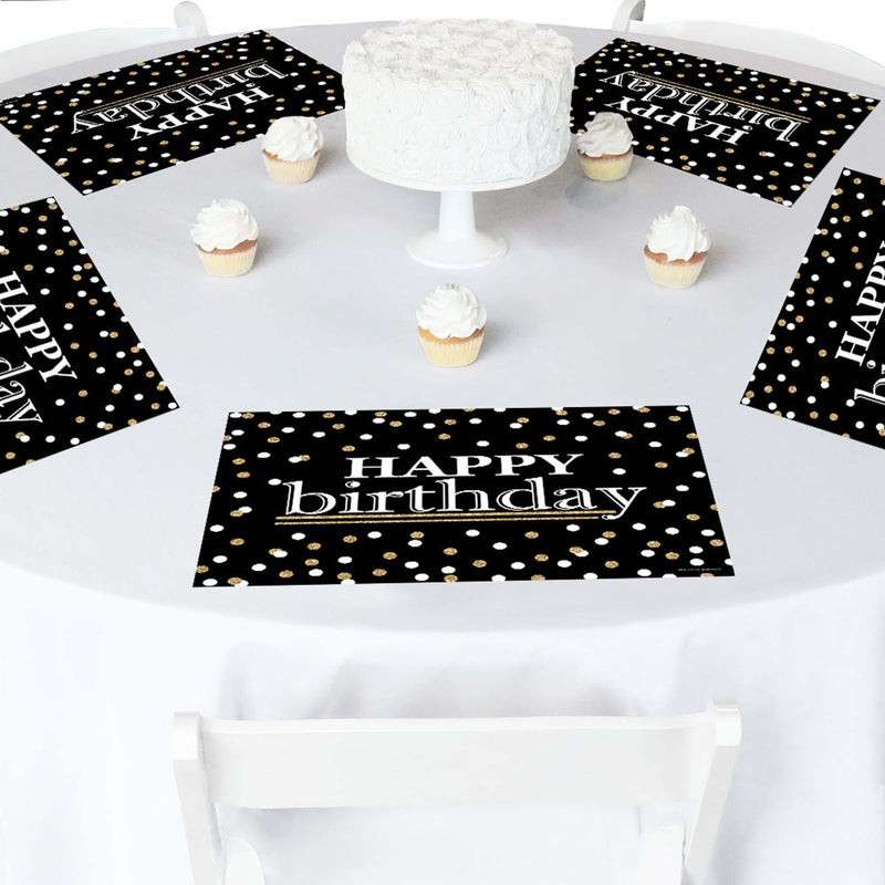 This set of 16 paper placemats are the perfect party table decoration for any birthday party. Use placemats to decorate tables for at-home dinner parties or take to your favorite restaurant and place at each setting. Made of sturdy cardstock paper, these disposable Adult Happy Birthday placemats will make it easy to clean up after the party is over.