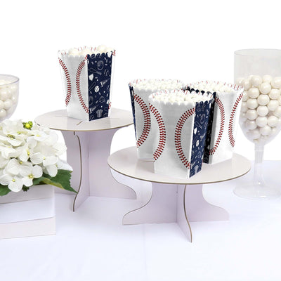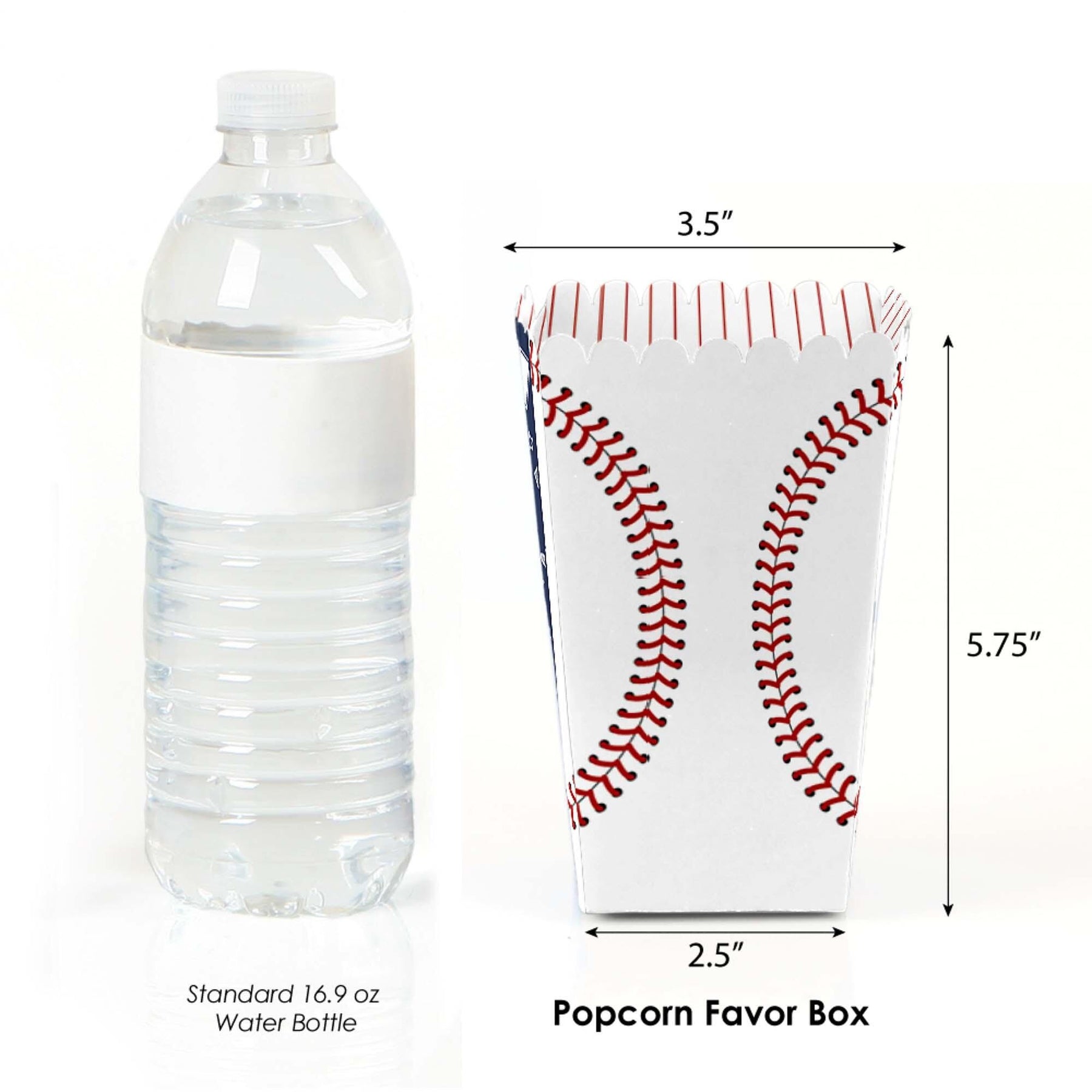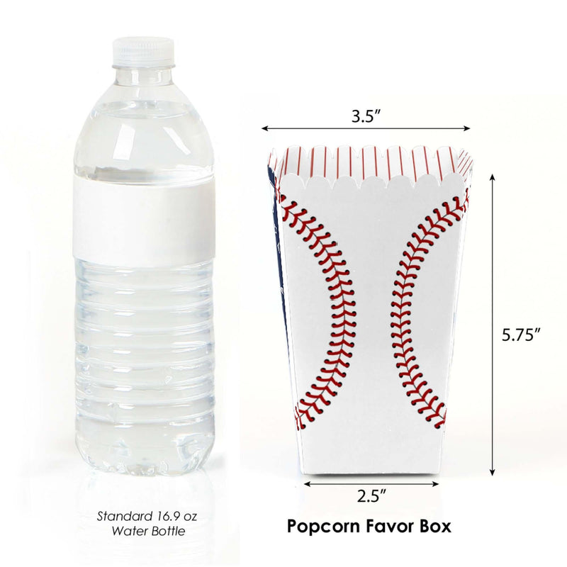 Each Batter Up - Baseball popcorn box shows off the vivid colors of this baby shower or birthday party theme. The fun patterns will look great next to the rest of your party supplies. Display filled popcorn boxes at your candy buffet table or at each individual placesetting to really bring a "pop" of color to the entire event.