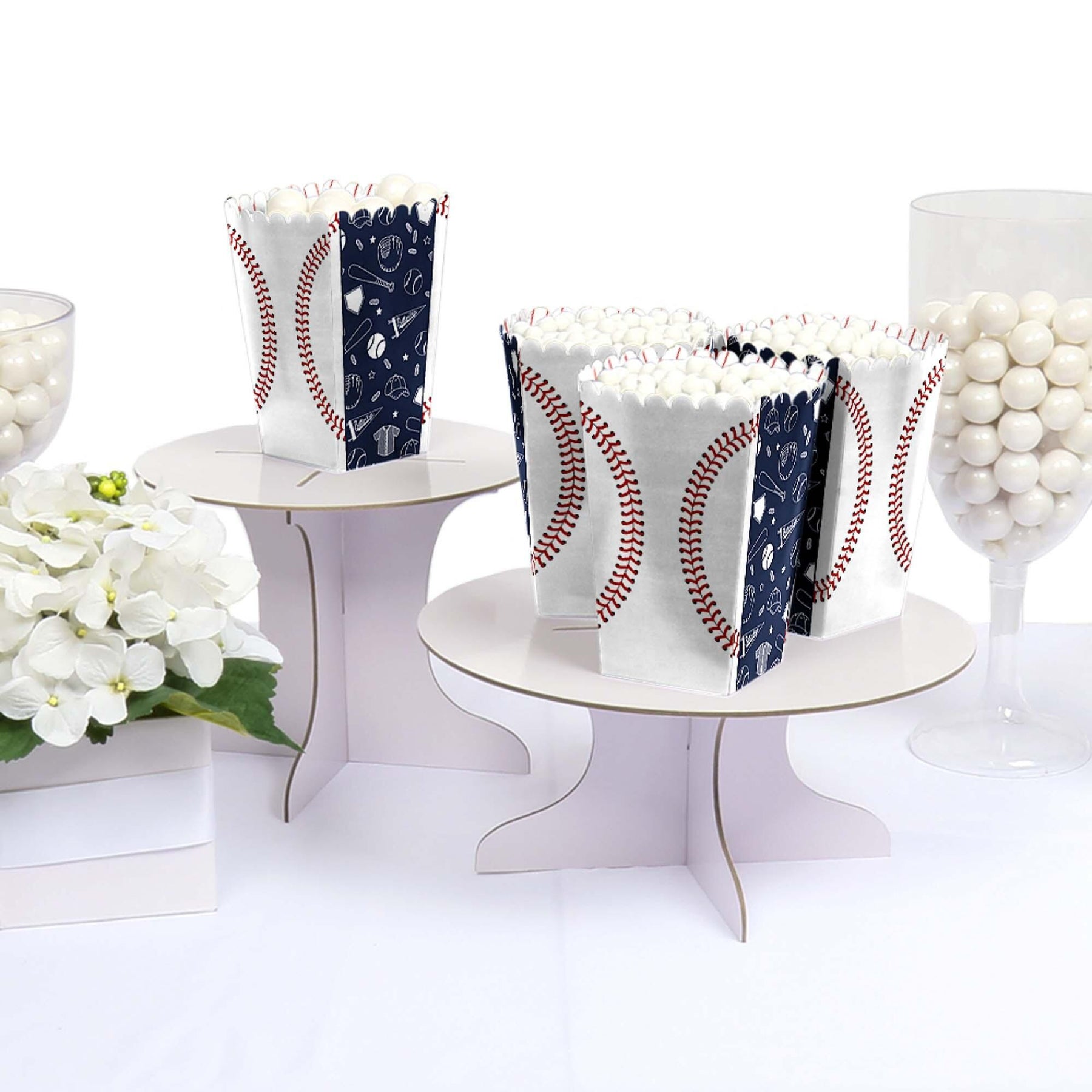Your guests will not go hungry when you serve them sweet or salty snacks in these Batter Up - Baseball popcorn boxes.