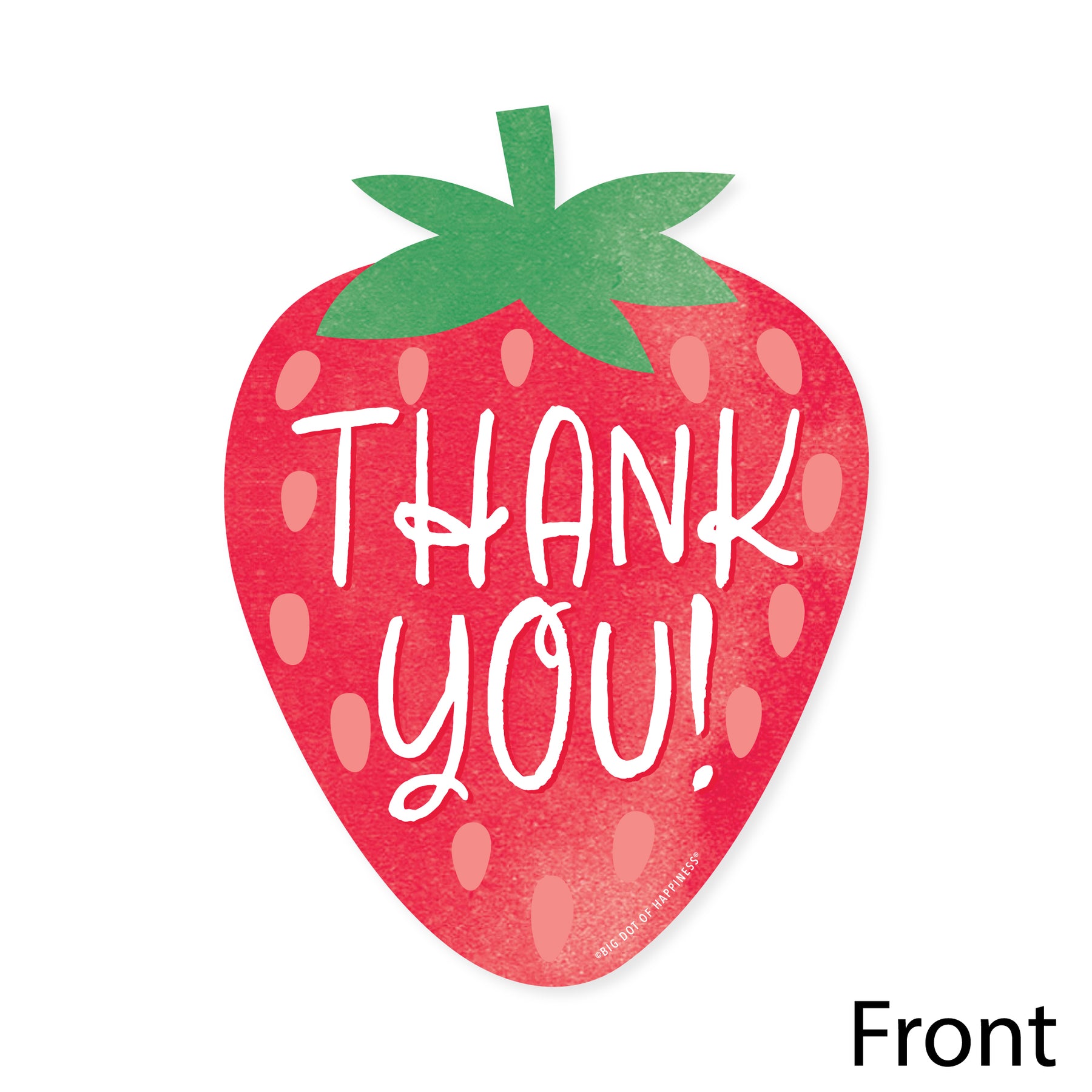 Berry Sweet Strawberry - Shaped Thank You Cards - Fruit Themed Birthday Party or Baby Shower Thank You Note Cards with Envelopes - Set of 12: