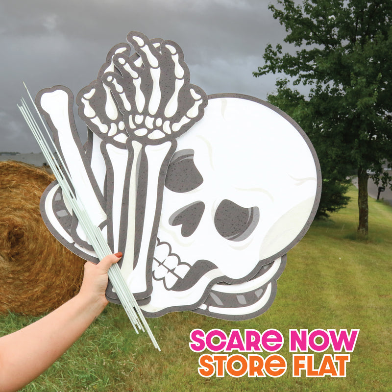 Get ready to give your Halloween a major upgrade with our 40-inch big pumpkin or skeleton yard sign! This bone-chilling decoration is perfect for making a big impact or adding to your haunted house decorations without the hassle. It’s crafted from durable, waterproof plastic, so it’s as tough as it is terrifying. And when the season’s over, just flatten it out for easy storage—no bulky items to clutter up your space. It’s the ultimate combination of spooky and practical!