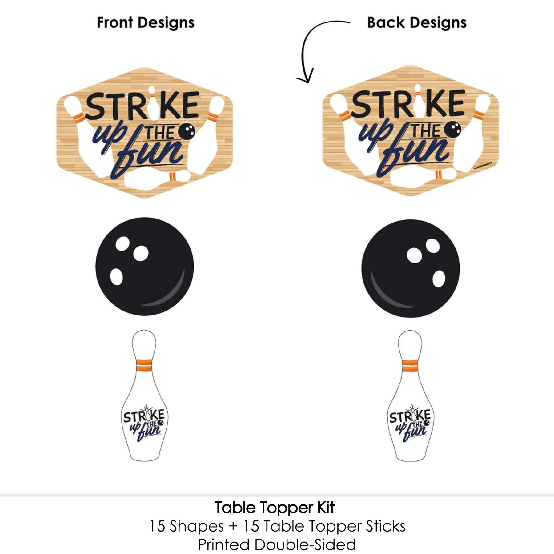 Bring your Baby Shower or Birthday Party theme to all areas of the celebration with Strike Up the Fun - Bowling Table Toppers. Each heavy-duty cardstock paper cutout quickly attaches to the included table topper sticks to create centerpiece sticks that can be used in vases or floral arrangements at all your party tables. You can even add them to candy jars at your goodie table! Strike Up the Fun - Bowling centerpiece sticks may also be used as photo booth props. You will love how versatile this fun party supply is while your guests will adore seeing them throughout your party venue. Get creative with this set of 15 table toppers and have a truly YOU-nique celebration.