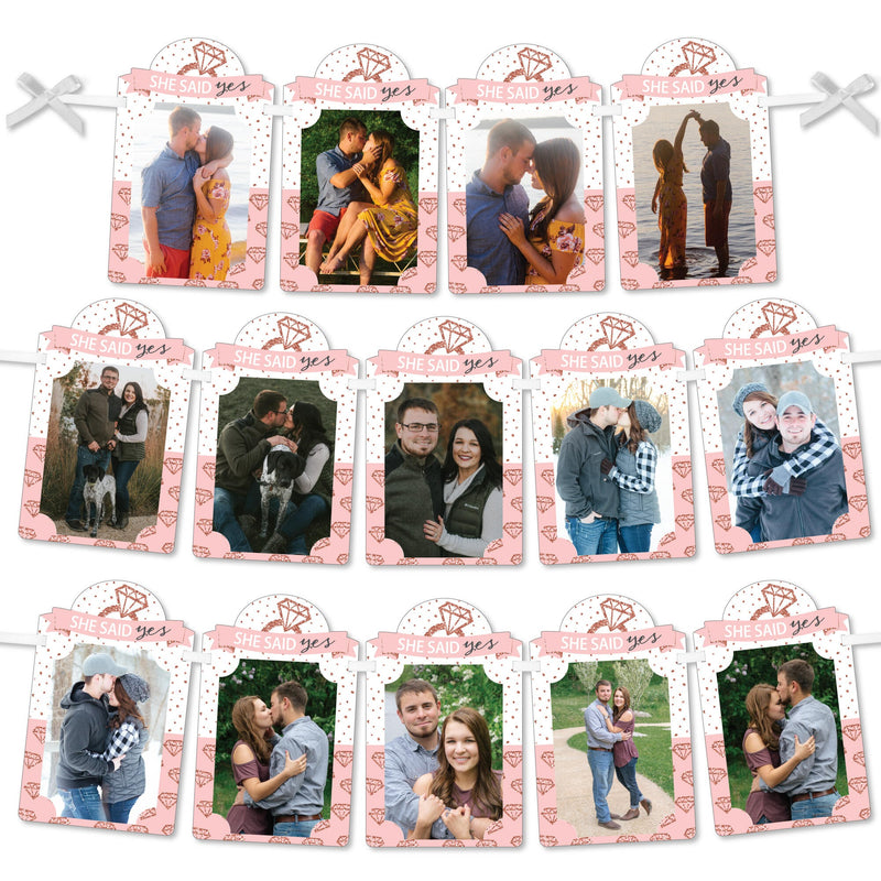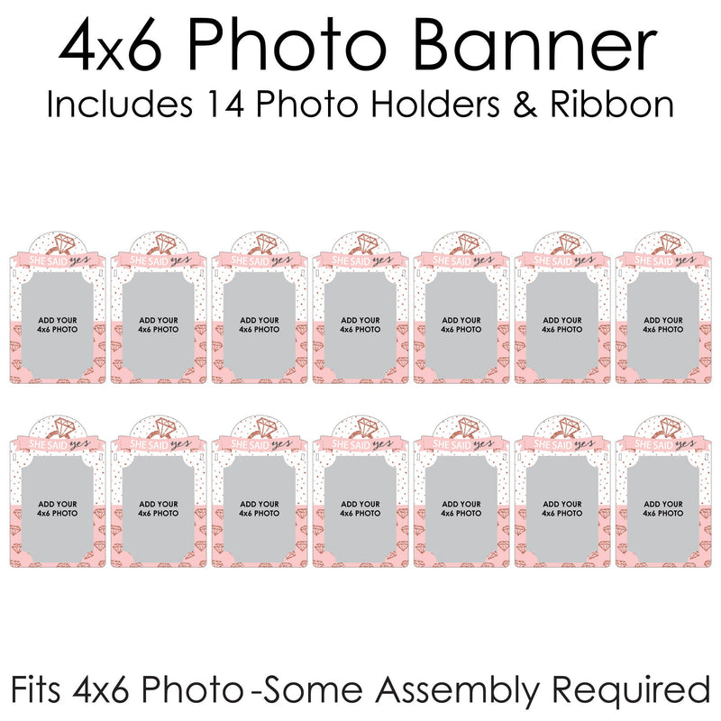 Hanging a Bride Squad Photo Banner will be the perfect addition to your Rose Gold Bridal Shower or Bachelorette Party decorations. This DIY Picture Banner is a fun and damage free way to show off a Picture Display. Bride Squad Photo Banner includes 14 themed photo holders to insert your own 4x6 photos vertically. Bride Squad Photo Banner is professionally printed on sturdy cardstock paper and will require easy do-it-yourself assembly.
