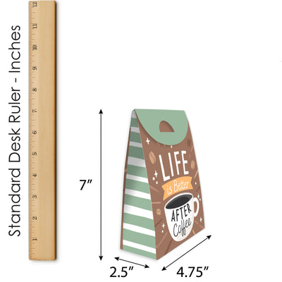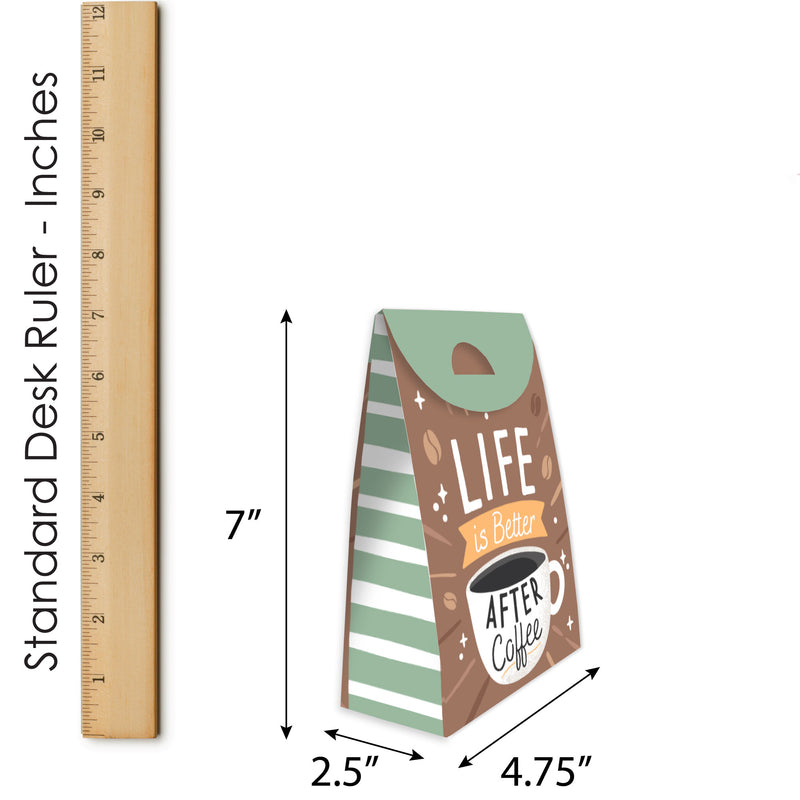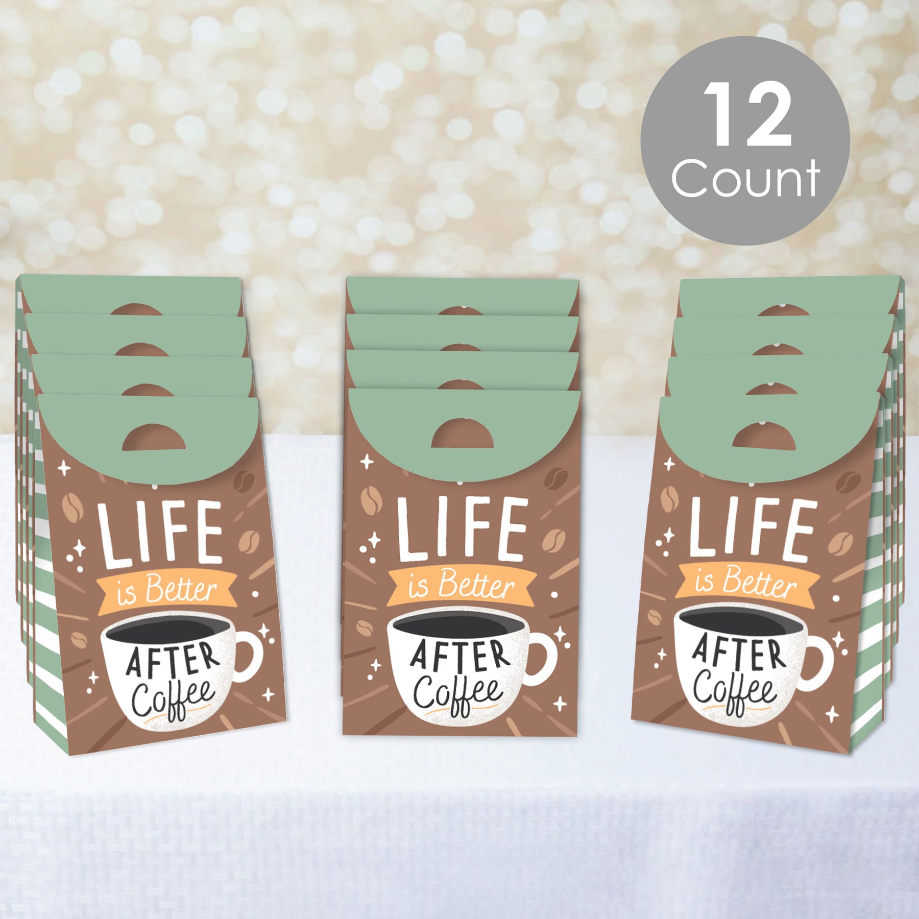 From small treats to coffee-themed trinkets and gifts, thrill your guests with the But First, Coffee Party Goodie Bags! Ideal for your Cafe Themed Party, these party loot bags measure to be 4.75” long x 2.5” wide x 7” tall and will certainly be a delight at your celebration. The But First, Coffee party bags come in a set of 12 and are professionally printed double-sided on sturdy cardstock paper with some easy DIY assembly required. Each favor bag includes creased lines and numbered tabs for easy folding. To close the bag, fold over the top flap and insert the tab inside the slit to secure it shut. Packaging will also include assembly instructions. Fill these swag bags with small surprises inside and place them at your dessert table for guests to grab and take home. Make your celebration complete when you delight your guests with the But First, Coffee Party Goodie Bags.