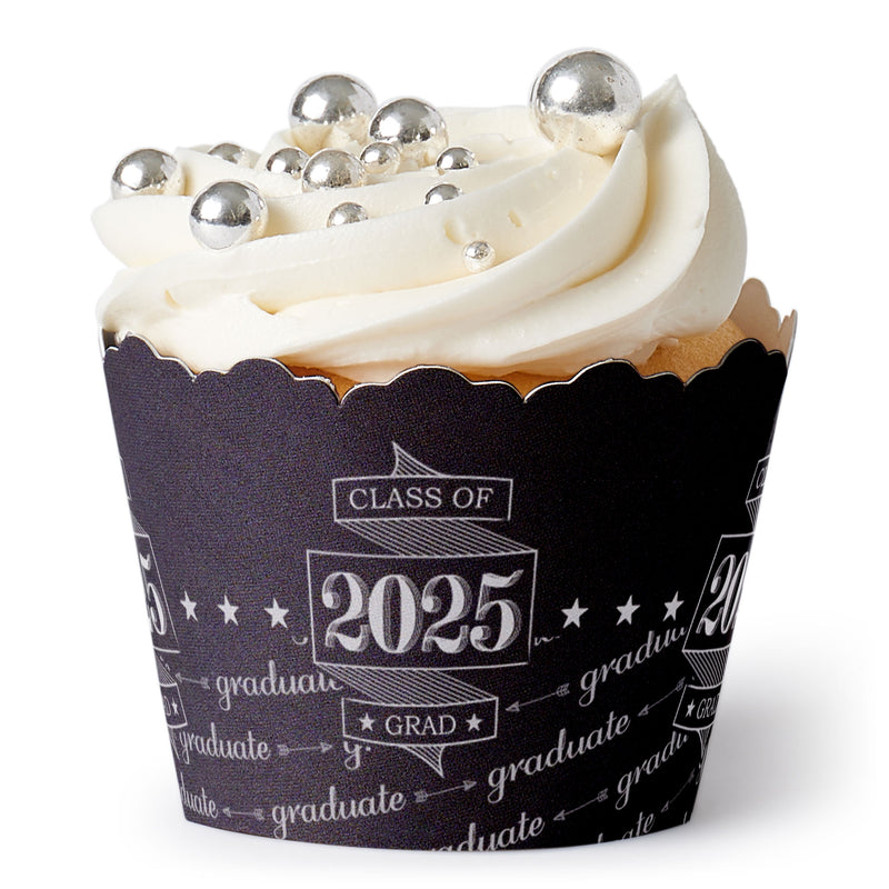 Create a beautifully wrapped graduation dessert with our Graduation Cheers graduation cupcake wrappers! Designed to wrap around standard cupcakes that have already been baked, these decorative wrappers match our unique Graduation Cheers graduation theme. Each wrapper is printed on premium-grade paper with a photo-like shine that's made in the USA. The edges are decoratively cut for an even more eye-catching look! Let our graduation cupcake wrappers put the finishing touch on your graduation dessert table.