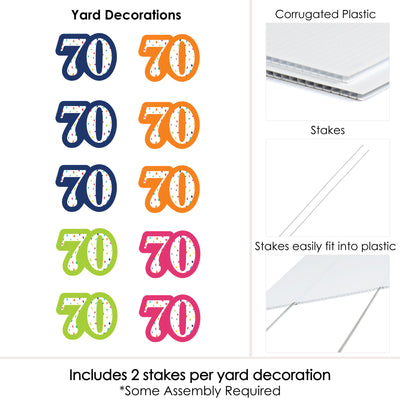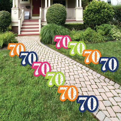 70th Birthday - Cheerful Happy Birthday - Lawn Decorations - Outdoor Colorful Seventieth Birthday Party Yard Decorations - 10 Piece