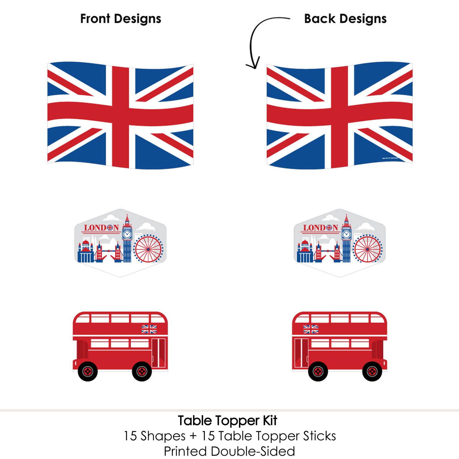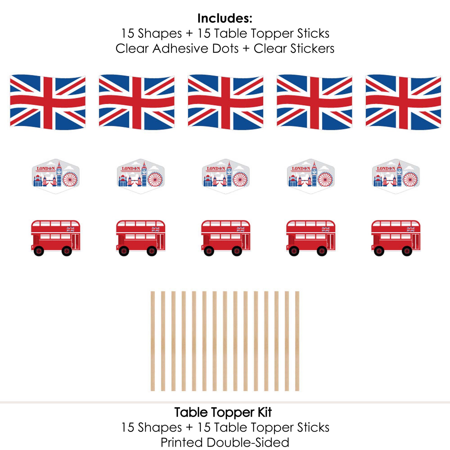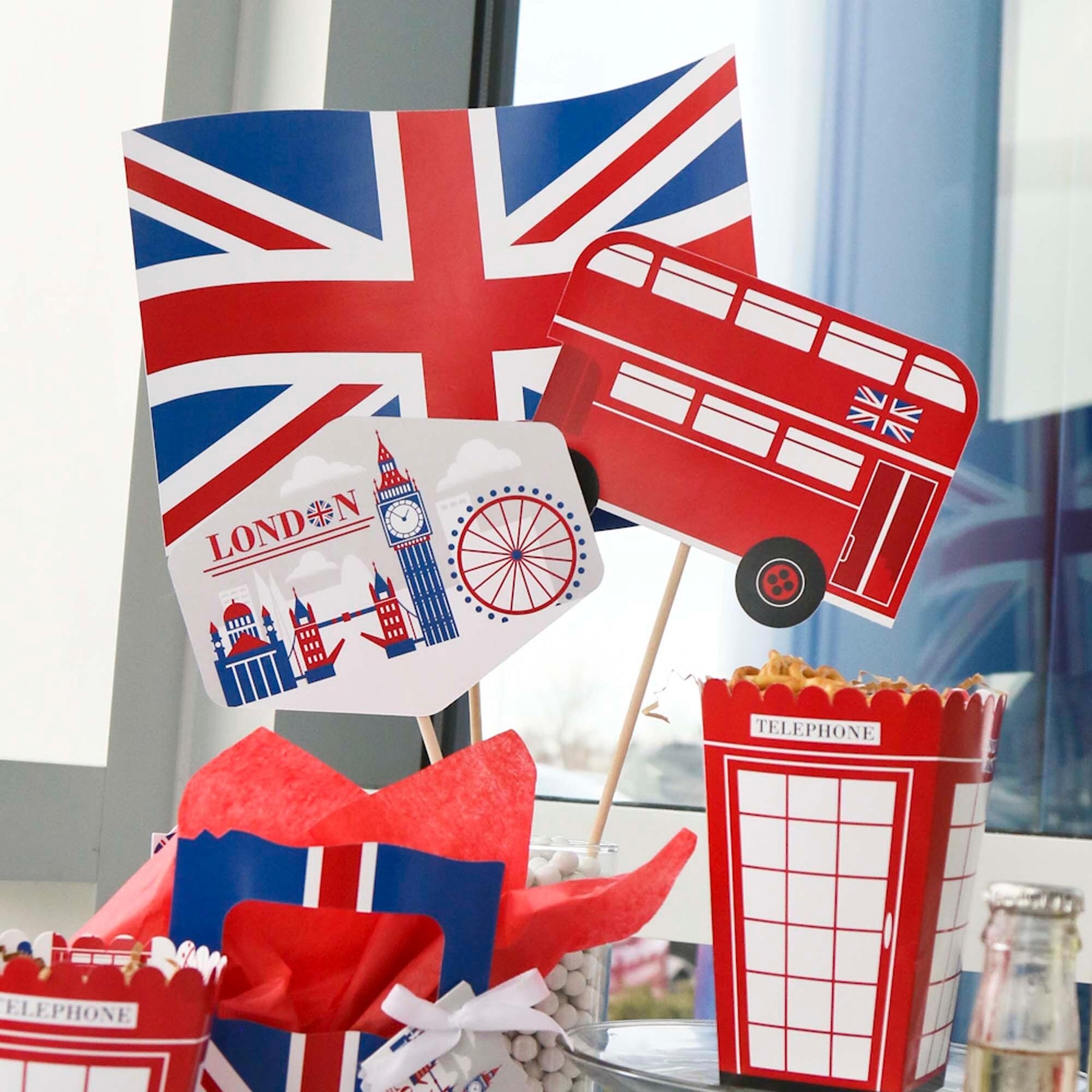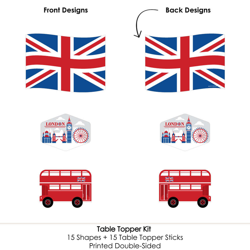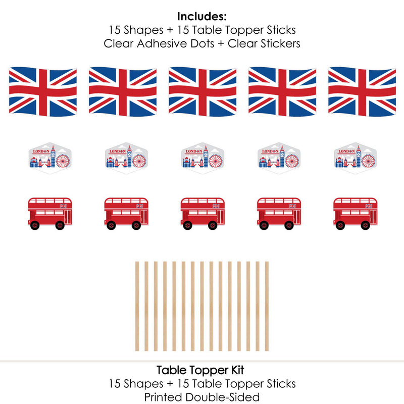 Cheerio, London - British UK Party Centerpiece Sticks Details: