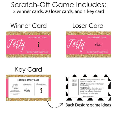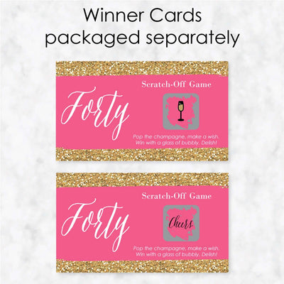 Chic 40th Birthday - Pink and Gold - Birthday Party Game Scratch Off Cards - 22 ct