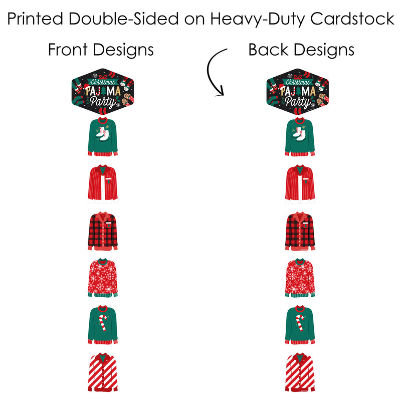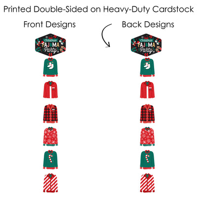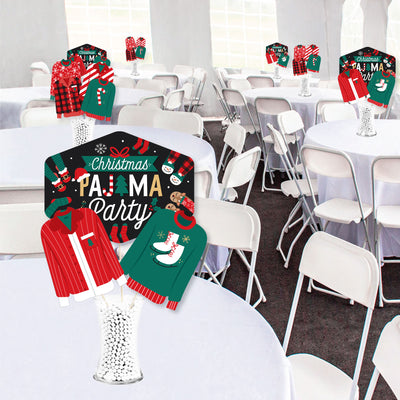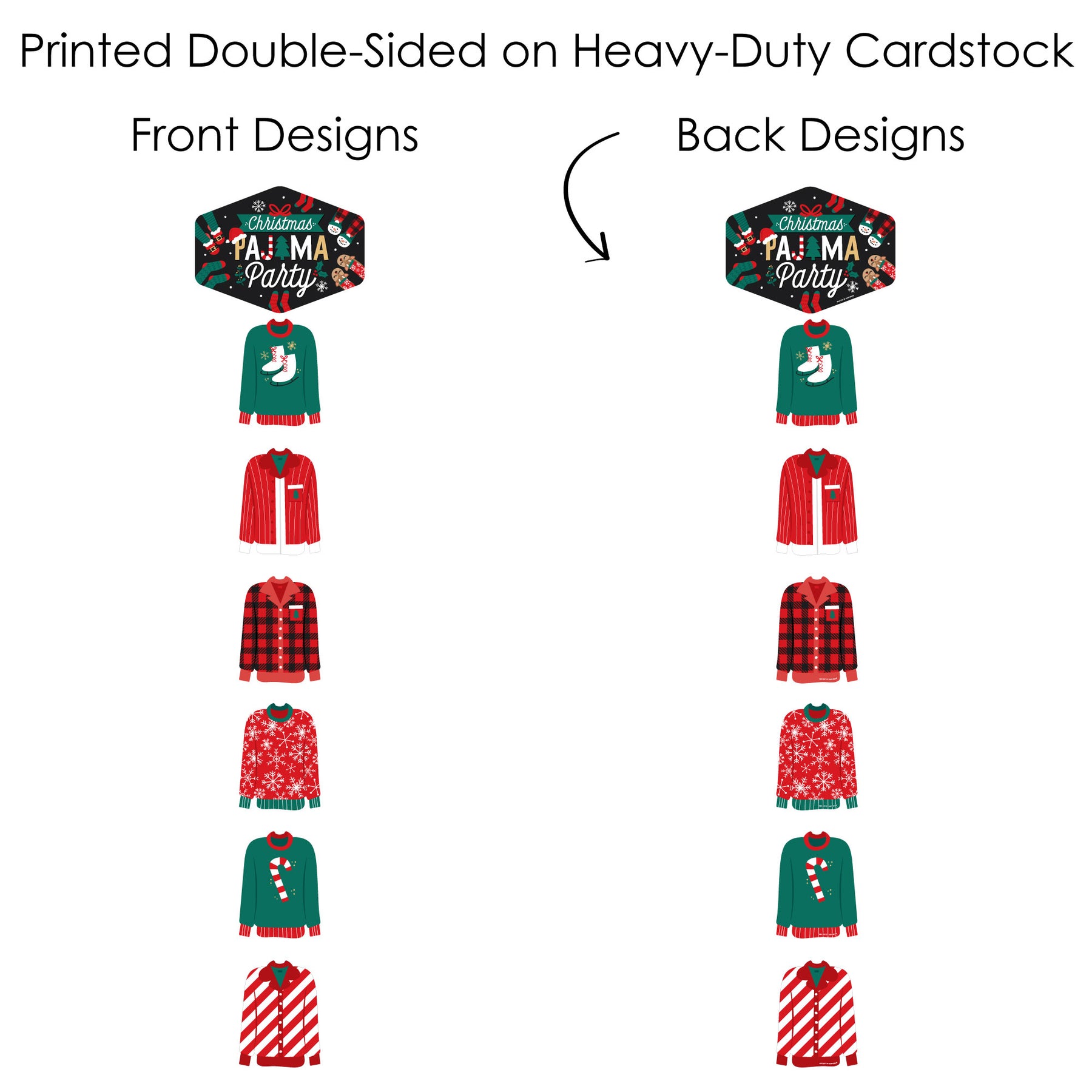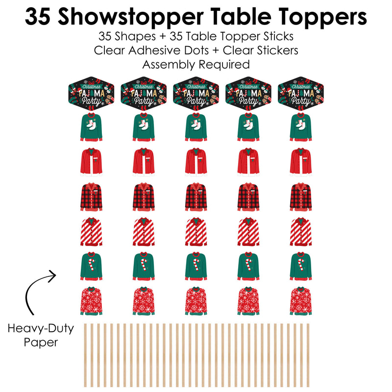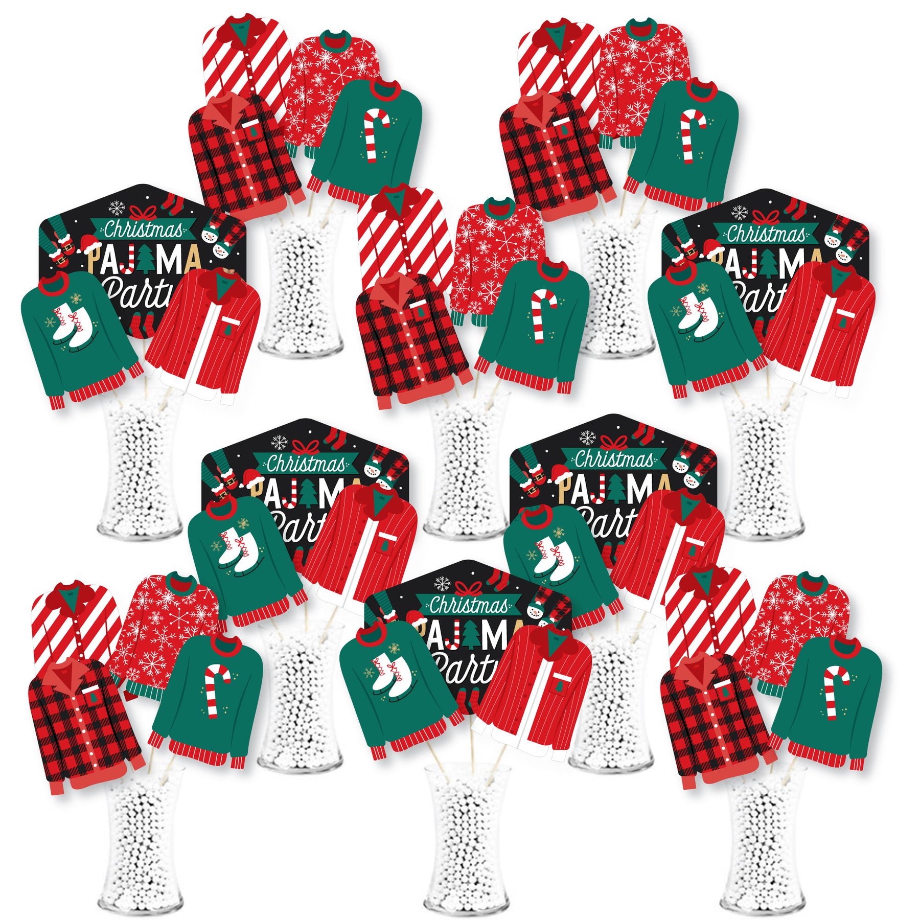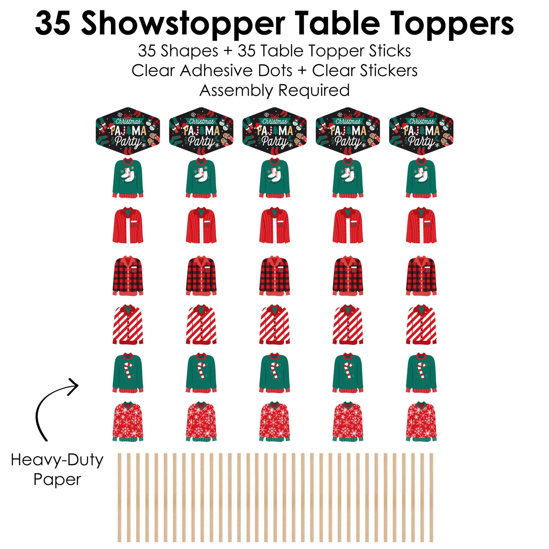 Whether hosting a large group celebration with multiple tables or inviting your closest friends over for a Christmas Pajamas Holiday Plaid PJ Party, create easy DIY party centerpieces with our 35-piece showstopper table toppers. Christmas Pajamas table topper cut-outs are professionally printed double-sided on sturdy cardstock paper with a photo-like shine and include 35 table topper sticks and clear stickers for at home assembly. Add assembled centerpiece sticks to floral vases, candy jars, or any sturdy container to place in the center of dining tables, at candy buffets, or the party's welcome entrance.