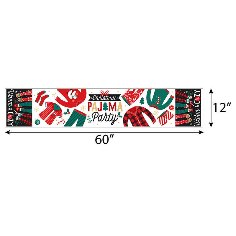 The Christmas Pajamas party theme is an all-time favorite and now you can take your party decorations to the next level with a petite table runner that perfectly matches the rest of your party decorations. Holiday Plaid PJ Party table runners look fabulous on any party tables. Add a table runner to your gift table or candy buffet to bring the entire party to life, and then add them to your dining tables for easy party decorations. Petite table runners will give your tablescape a big pop of color and pattern when you add a Christmas Pajamas party table decoration to your list of party supplies. Each table runner is professionally printed on a water-resistant paper that has a glossy finish.
