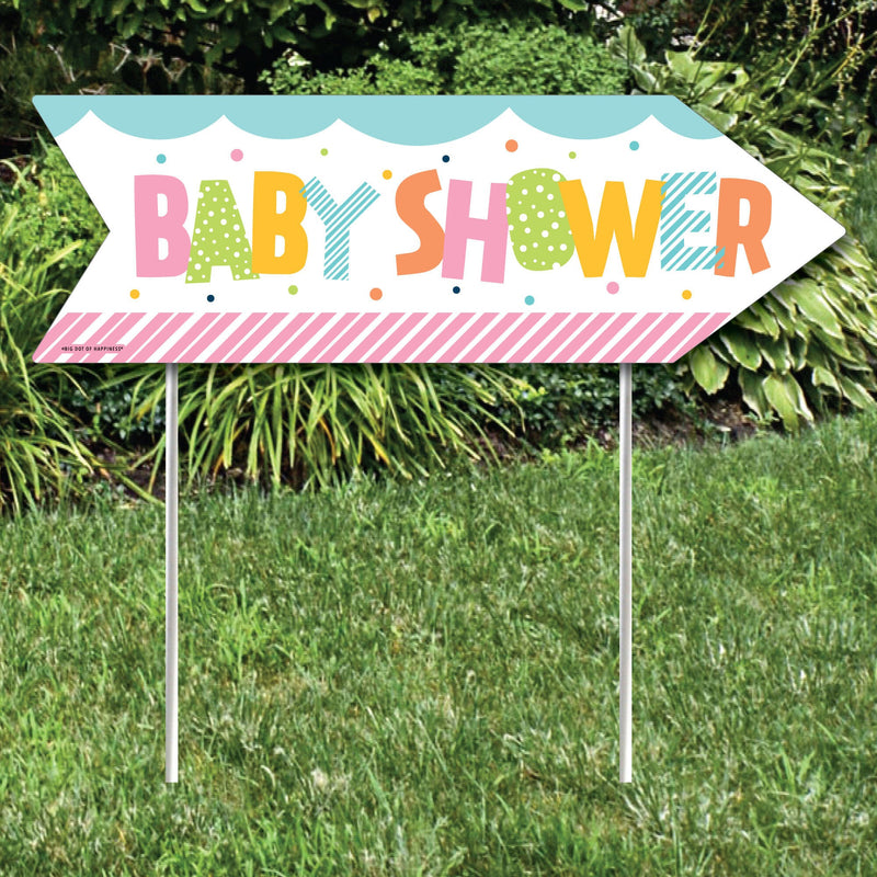 Baby Shower Signs are a great way to make sure everyone knows where things are at your Gender Neutral Party. Colorful Baby Shower arrows will guide the way at your event. This set of 2 Colorful Baby Shower arrows is printed on both sides and made of thick corrugated plastic, sturdy enough to withstand any weather. The heavy-duty stakes will secure each Colorful Baby Shower Sign into the ground so you can be sure it stays put until you remove it. Using directional arrow yard signs is easy – simply place them outside your venue or at your outdoor baby shower to guide your guests to the different areas of your celebration.