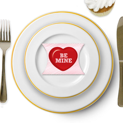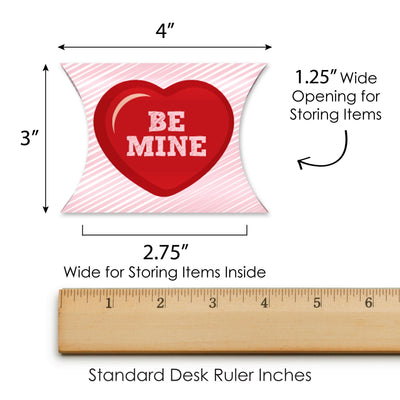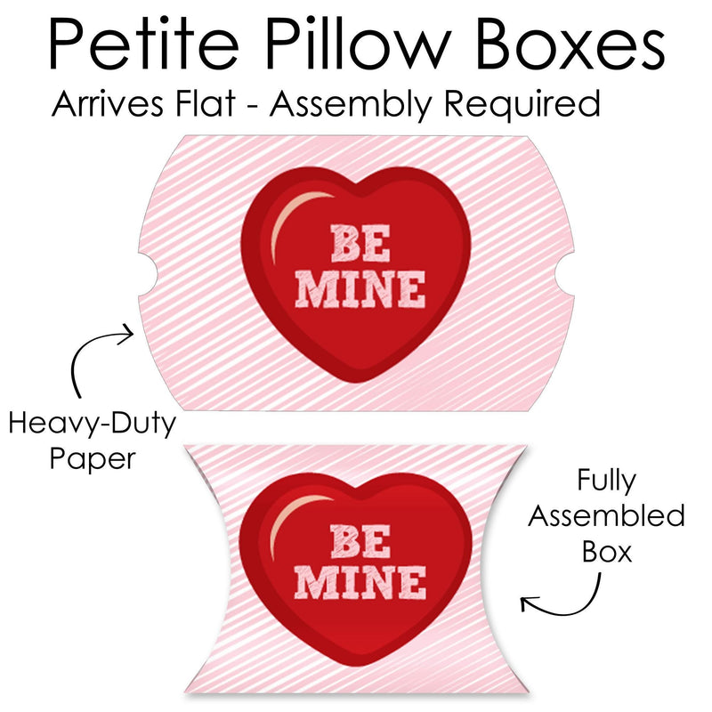 Get ready to have an amazing Valentine's Day Party with these Conversation Hearts Petite Pillow Boxes. Small and compact, the petite pillow boxes are excellent for holding fun-sized goodies like jewelry, small toys, and mini candy bars. Made of heavy-duty cardstock paper, these boxes are decorative, sturdy, and easy to assemble. To inflate, gently squeeze box open and fold ends in numerical order. Place it around the dessert table as decoration or hand one to each of your guests with party favors inside for an unforgettable celebration.