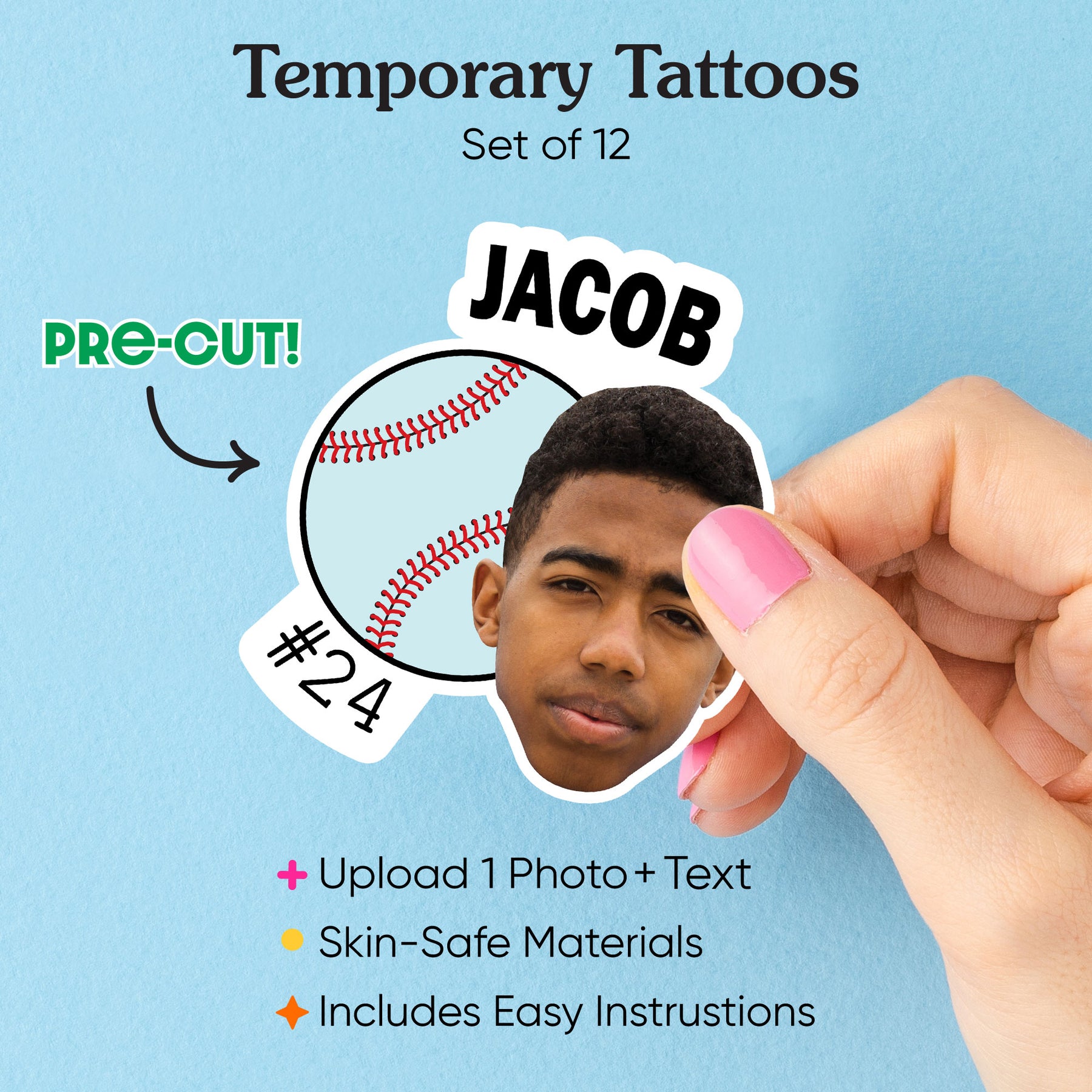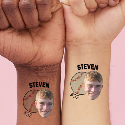 Step Up to the Plate - And Put Your Face on It! These baseball-themed temporary tattoos let you add a name, jersey number, and a custom face for a truly personal look. With 12 tattoos per set, they’re a home run for team parties, tournaments, and baseball fans. Wear your love for the game wherever you go!