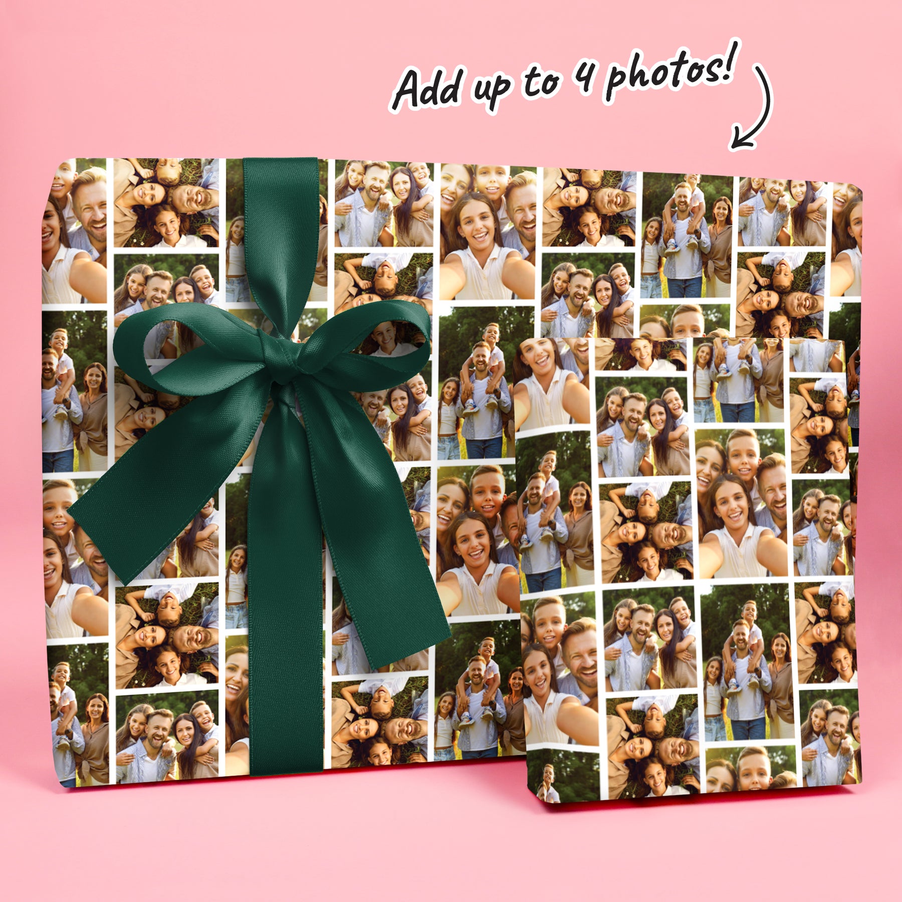 Deck the gifts with something personal! Our Custom Photo Collage Wrapping Paper lets you add your own photo to create unforgettable, festive wraps for Christmas, Birthdays, Graduation Gifts and more! Each roll is made with high-quality matte paper for that smooth, premium feel, and when you buy up to 4 rolls, you save. Designed to wrap all your holiday gifts with love!