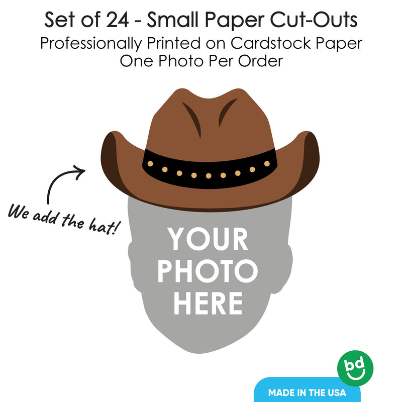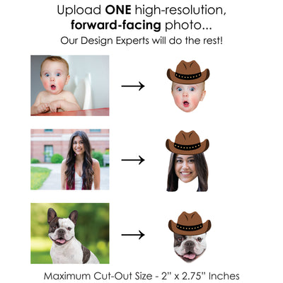 Printed double-sided on sturdy cardstock, they’re high-quality and built for fun. Just upload one photo, and you’re set for a party to remember. Whether celebrating a friend, family member, or even a pet, these custom face cutouts make any western birthday, baby shower, or bachelorette party extra fun!