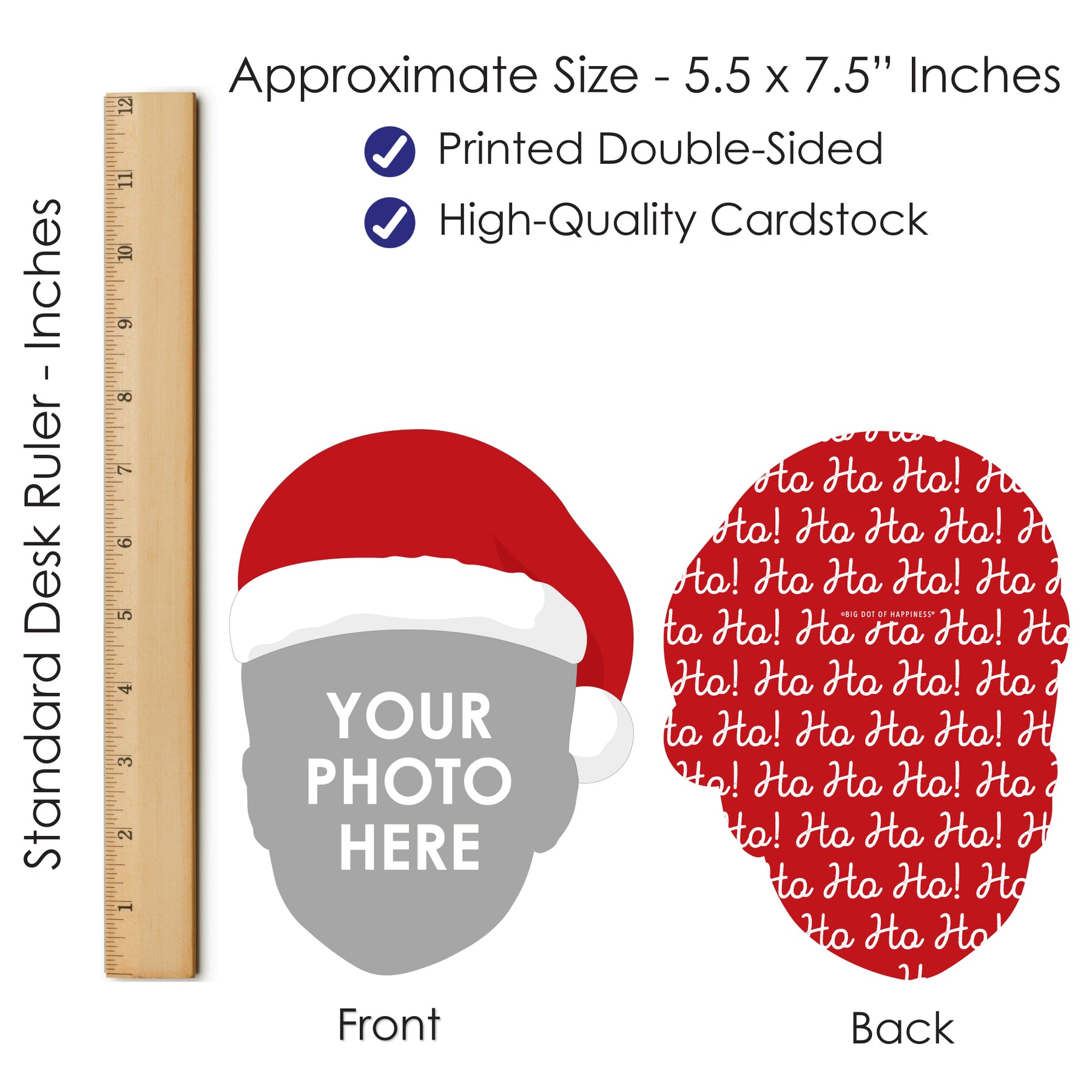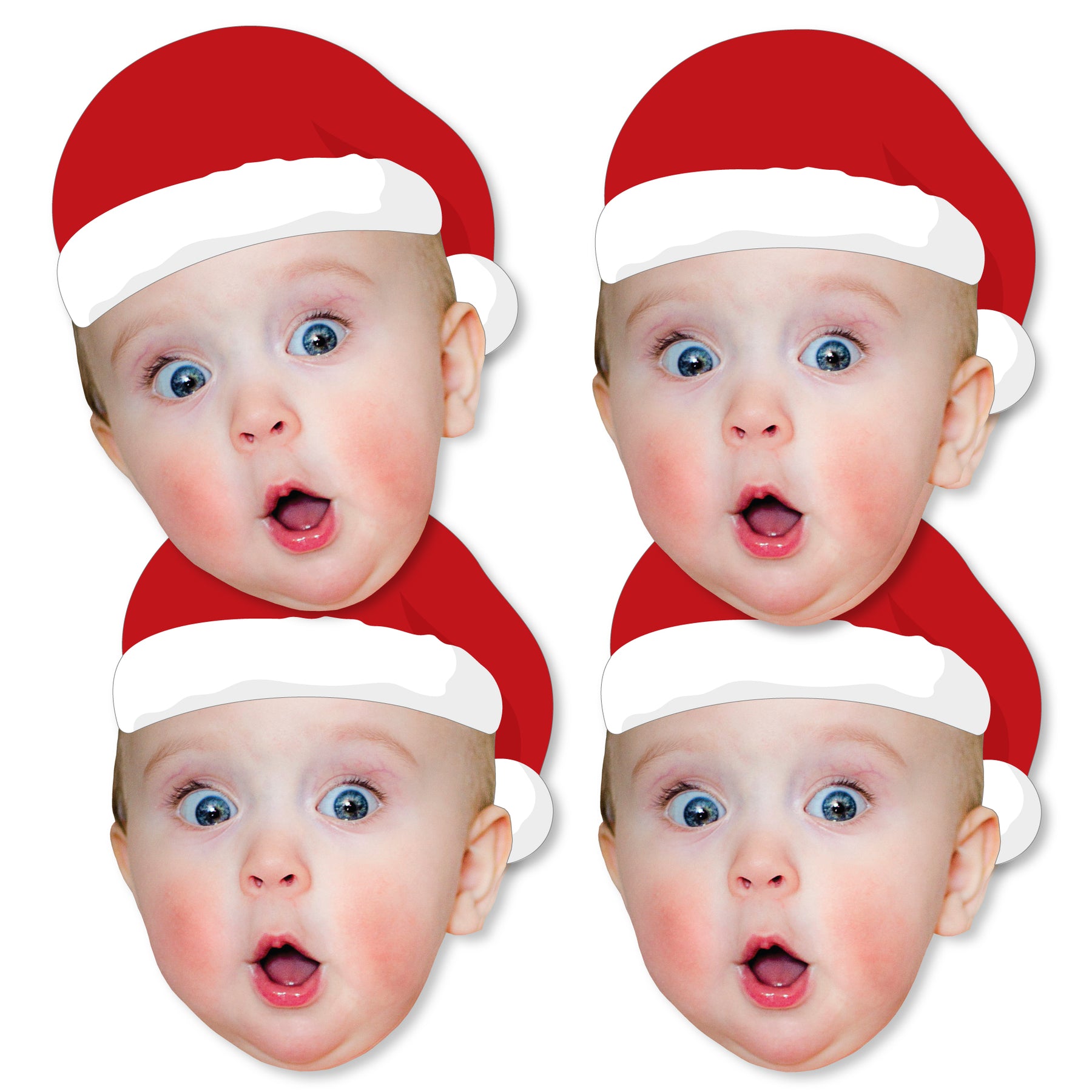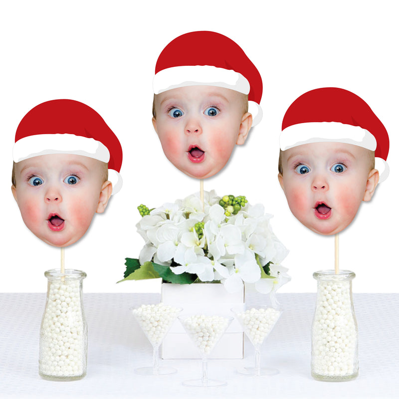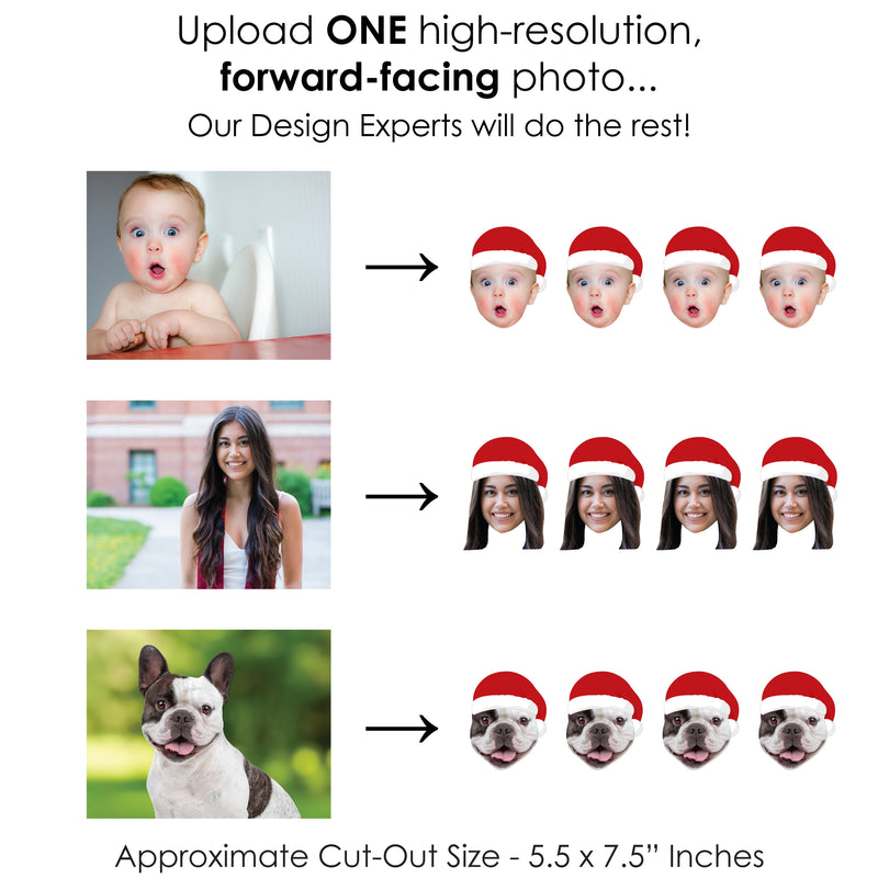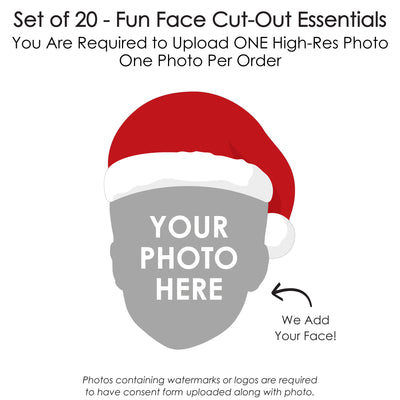 Get creative when you decorate with the set of 20 custom Jolly Santa Claus Fun Face Essentials. The perfect way to spotlight your guest of honor, these custom paper shapes will feature ONE face photo on Santa hat designs that will transform your Christmas Party into an unforgettable celebration! Professionally printed double-sided on cardstock paper, the customized Jolly Santa Claus cutouts are a versatile DIY party decoration that will have you ready to unleash your creativity. You can scatter the Christmas large shaped cut-outs throughout your venue, hang them in a garland banner, or use them as eye-catching centerpieces for a unique tablescape. The face cutouts will make a statement however you choose to use them! Have fun decorating when you honor your family member, friend, or beloved pet with these fun and quirky custom jolly face essential cutouts.