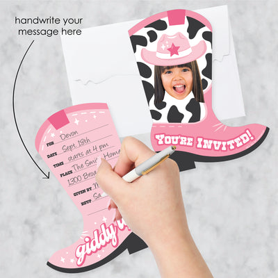 Custom Fun Face Pink First Rodeo Fill-In Invitations - 12 Ct