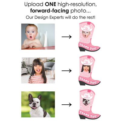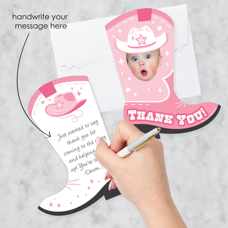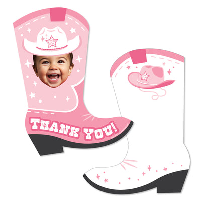 Custom Fun Face Pink First Rodeo Thank You Cards - 12 Ct
