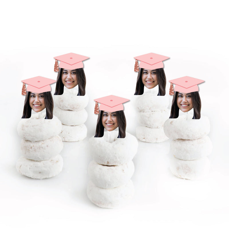 Rose Gold Grad Cap Fun Face Treat Picks: