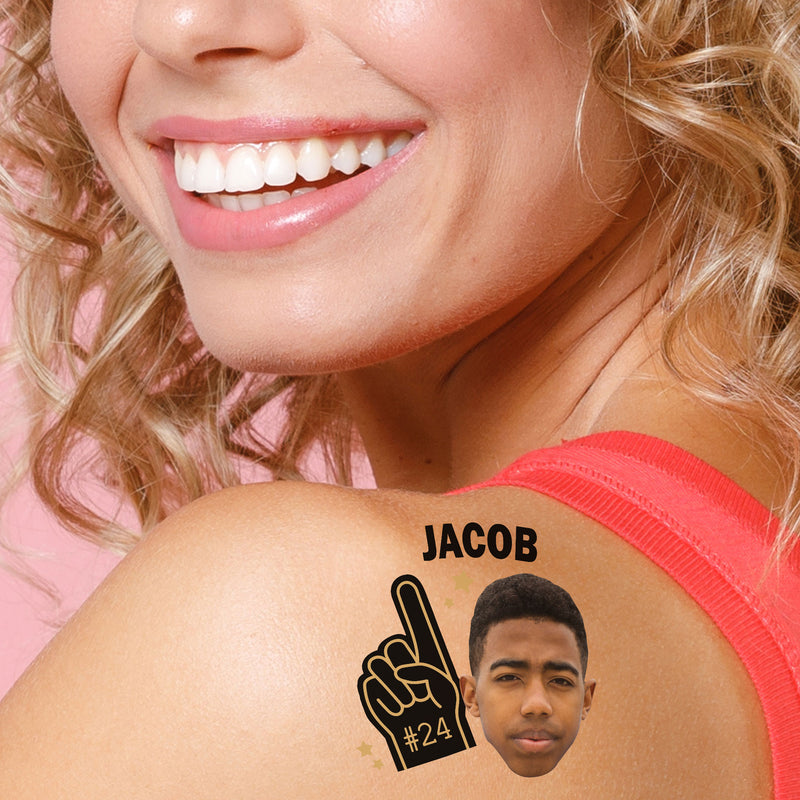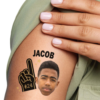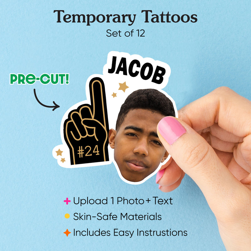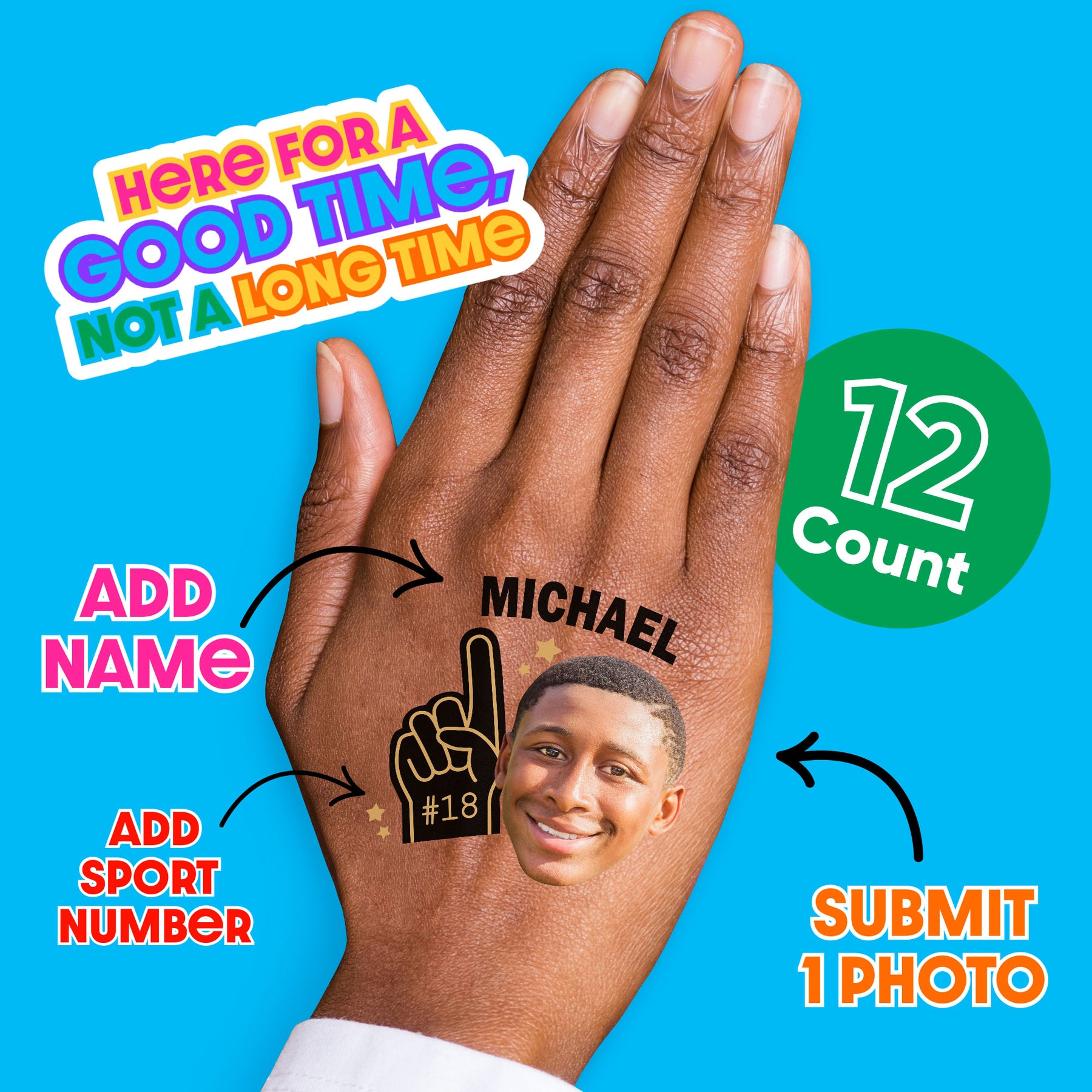 Bring the Hype - With Your Face on It! These fun foam finger temporary tattoos take team spirit to the next level! Customize with a name, jersey number, and even a face for the ultimate game day look. With 12 tattoos per set, they’re perfect for cheering on your team at games, tournaments, and tailgates. Show off your support in a bold and unique way!