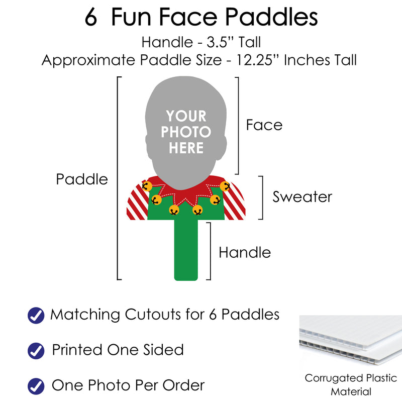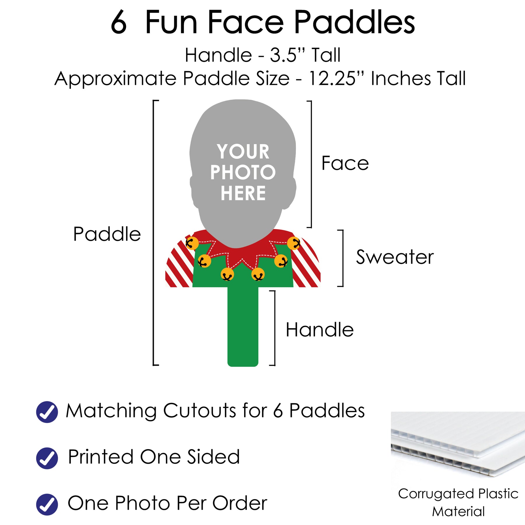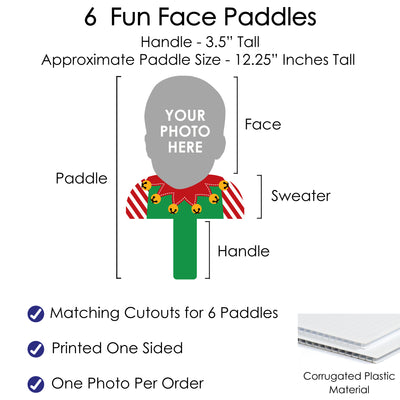 There’s no better way to celebrate your favorite person (or pet!) than with our Ugly Sweater Fun Face Cutout Paddles. Whether you’re throwing a Christmas bash or just love a good laugh, this set of 6 matching paddles featuring ONE custom face in a hilariously festive sweater design is guaranteed to bring on the giggles.
