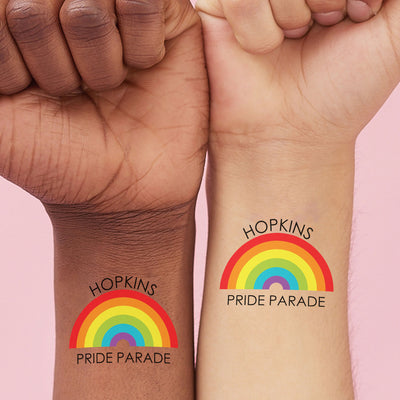 Make Your Pride Personal! These vibrant rainbow temporary tattoos let you add up to two custom text lines, making them perfect for showing off your unique message. With 12 tattoos per set, they're a great addition to Pride parades, parties, and celebrations. Wear your pride, your way!