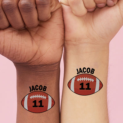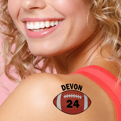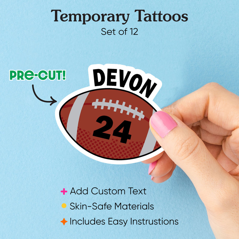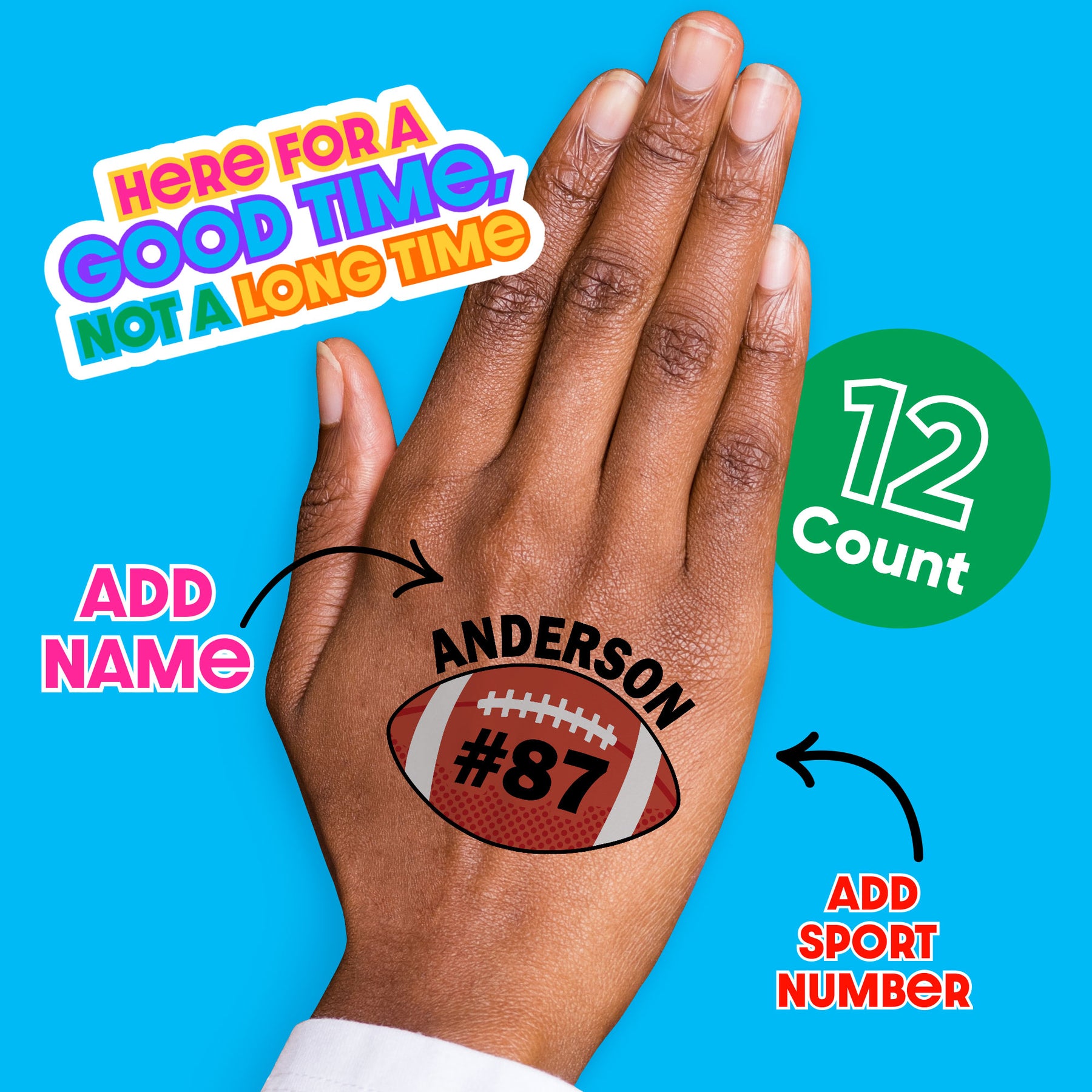 Gear Up for Game Day! Customize these football-themed temporary tattoos with a name and jersey number to show your team pride. Each set includes 12 tattoos, making them great for tailgates, team parties, and football celebrations. Wear your game day spirit with pride!