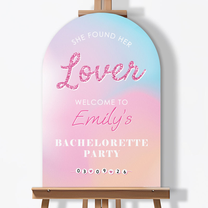 Make your bachlorette celebration unforgettable with a Personalized Friendship Bracelent-inspired Welcome Sign! Designed to complement any era-related bridal theme, this sign features three customizable text lines and is available in two sizes—11x17 inches or 15x23 inches—to fit any celebration space.