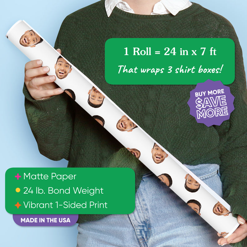Deck your gift-giving with something personal! Our Custom Photo Wrapping Paper lets you add your own photo to create memorable, festive wraps for the season. Each roll is crafted with high-quality matte paper for a smooth, premium feel, and when you buy up to 4 rolls, you save. Designed to wrap all your gifts with love and joy!