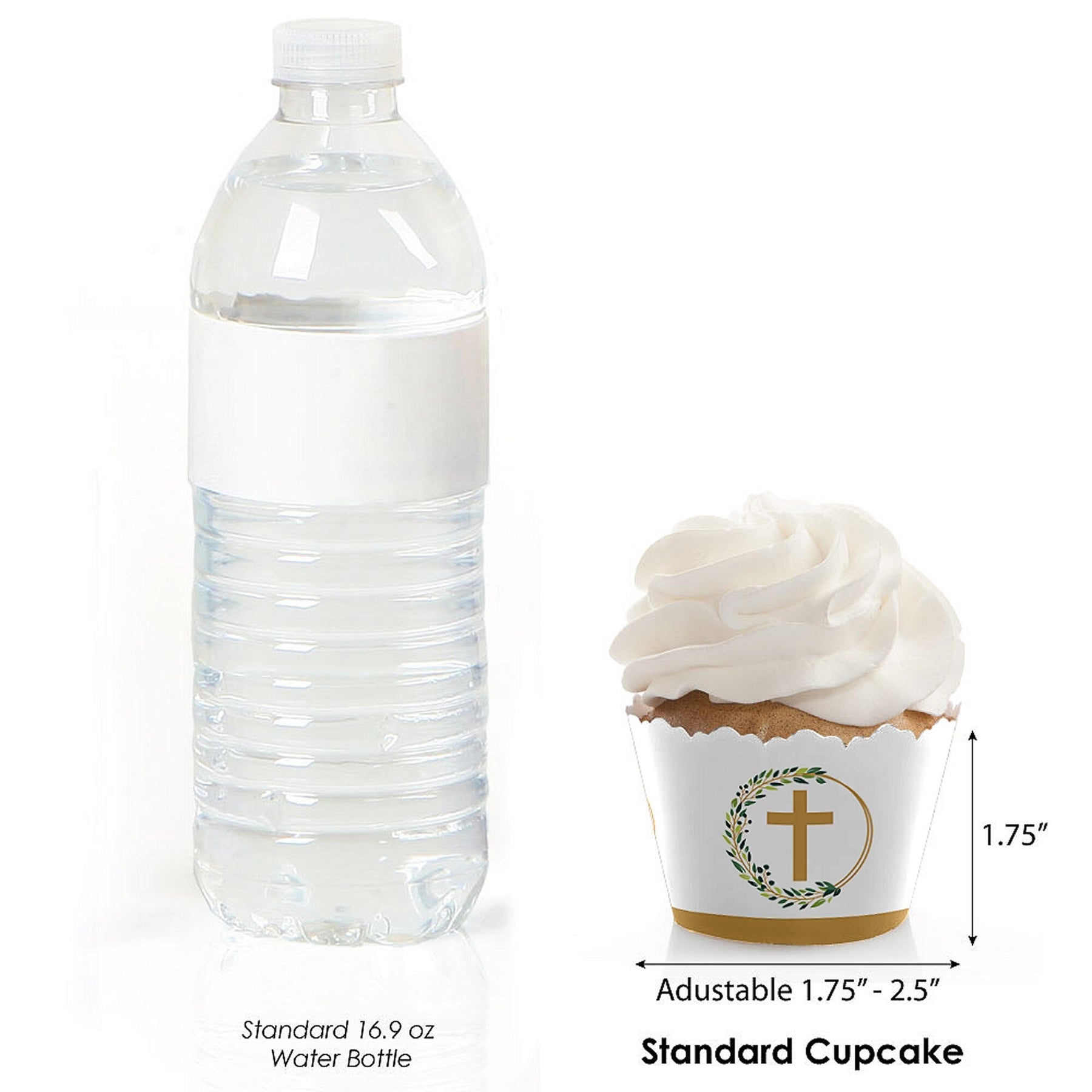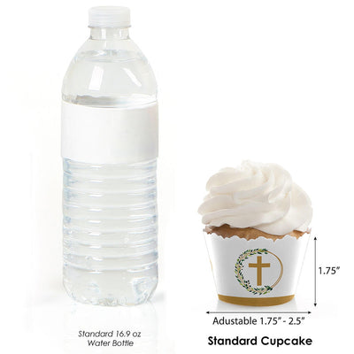 With our Elegant Cross cupcake wrappers, your frosted cupcakes will match your Elegant Cross theme perfectly! These wrappers are printed on high-quality paper and feature not only a scenic background, but a decorative top edge! They close securely with a tab, and adjust to fit cupcakes up to 2.5 inches in diameter. Busy hostesses love the ease with which our Elegant Cross cupcake wrappers can be used.