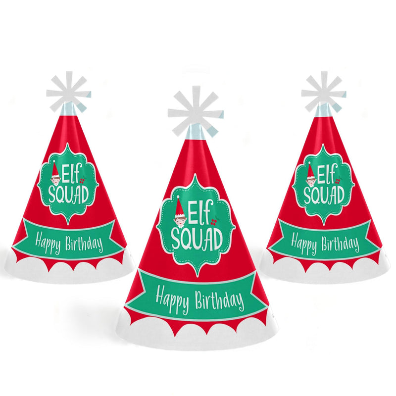 Everyone will be ready to celebrate with the guest of honor when wearing an Elf Squad party hat. This set of 8 party hats is a great addition to your event and is sure to get everyone smiling – especially the guest of honor! Each Elf Squad - Happy Birthday Hat perfectly themed and has a festive star at the top. Be sure to have your camera ready because these Elf Squad birthday party hats are going to give you some great photos!