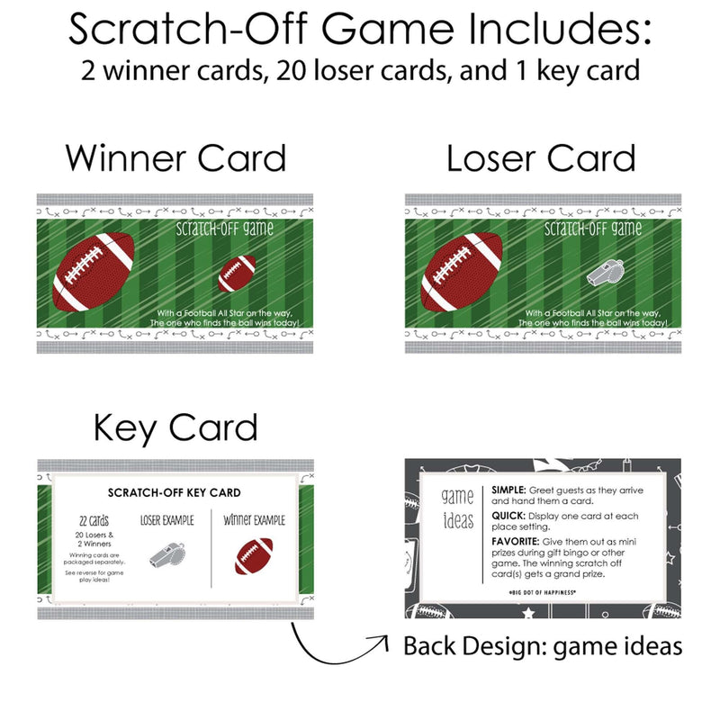 FAVORITE: Give them out as mini prizes during football party gift bingo or other games. The winning scratch off card(s) gets a grand prize.