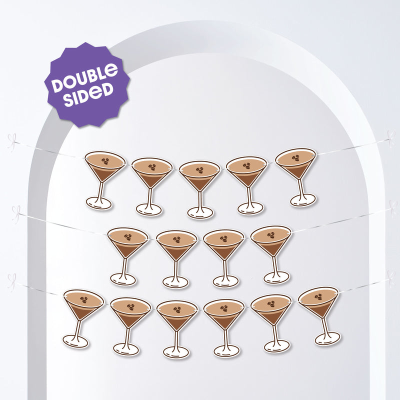 Bring the buzz to your next girls’ night party with our Espresso Martini Garland Banner! Featuring 15 double-sided martini glasses with coffee-inspired charm, this garland is the perfect pick for anyone who loves a chic cocktail & an even chicer party setup. Great for milestone birthdays like 21st or 30th, trendy bachelorette themes, or stylish book clubs that lean more espresso than literature. It comes with 10 yards of white cording and is proudly made in the Midwest—because good taste starts with great party decor.