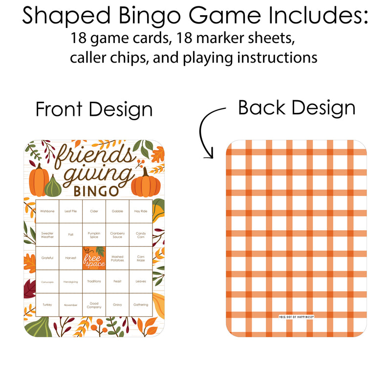 Fall Friends Thanksgiving - Friendsgiving Party Bingo Game - Set of 18