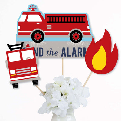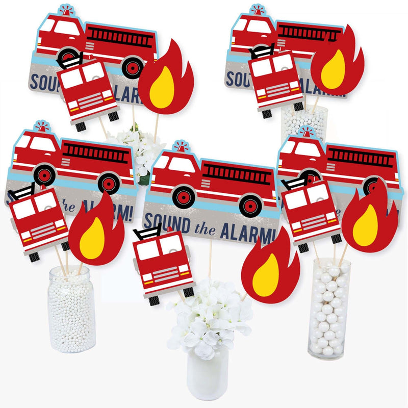 Fired Up Fire Truck - Firefighter Firetruck Baby Shower or Birthday Party Centerpiece Sticks Details: