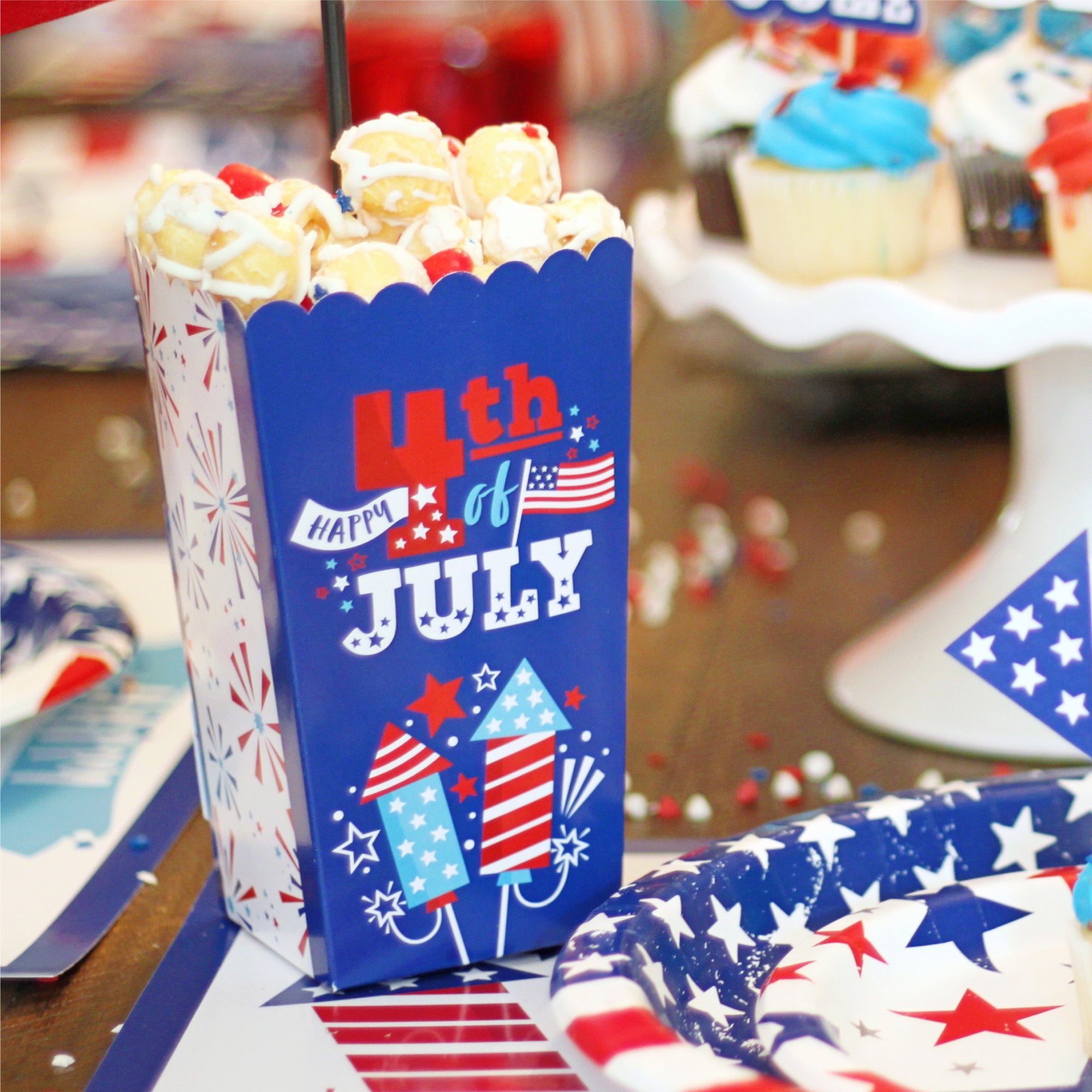 Your guests will not go hungry when you serve them sweet or salty snacks in these Firecracker 4th of July popcorn boxes.