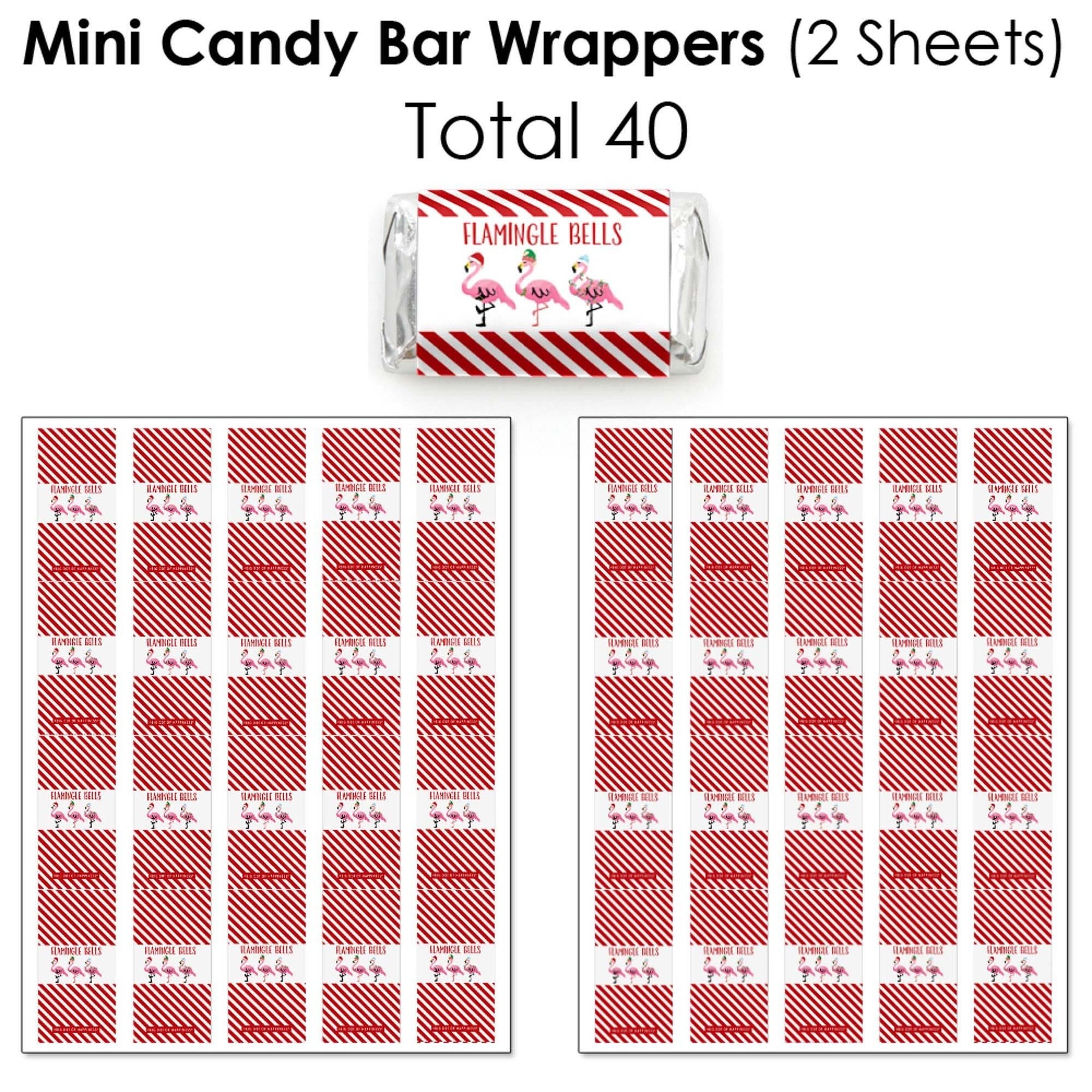 2 Sheets of Mini Candy Bar Wrappers (total 40) size 1.25 inches wide x 2.75 inches high and fit Hershey® Miniatures® candy bars.