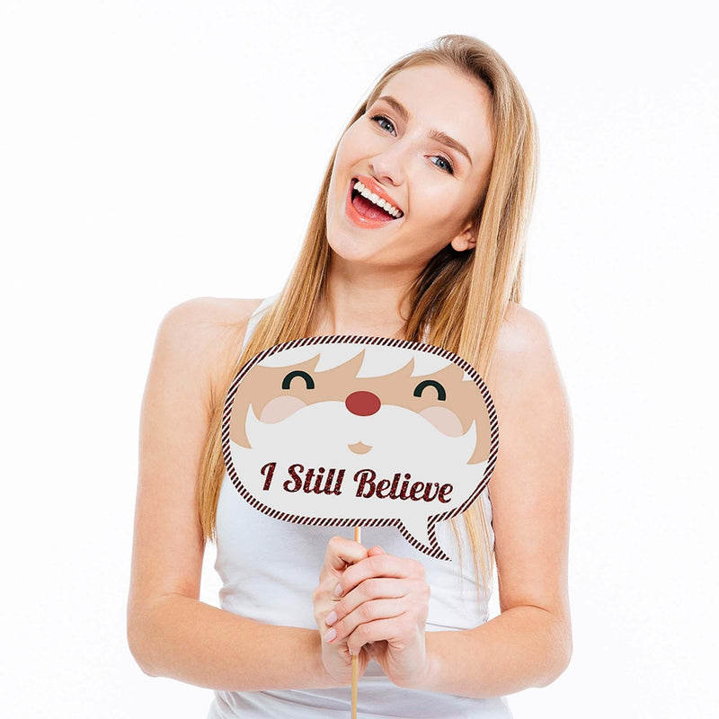The perfect photo booth begins with fabulous photo booth props. Our printed and cut kit will help you easily create fun party photos at your Christmas Party. This Funny Christmas prop kit comes with 10 pieces and is ready for quick assembly. Simply add the included prop kit sticks to each piece, attaching with the included clear stickers, and display alongside a fun photo booth backdrop. Your friends and family will love the fun photos they will create with this amazing 10 piece Funny Christmas Photo Booth Prop Kit.