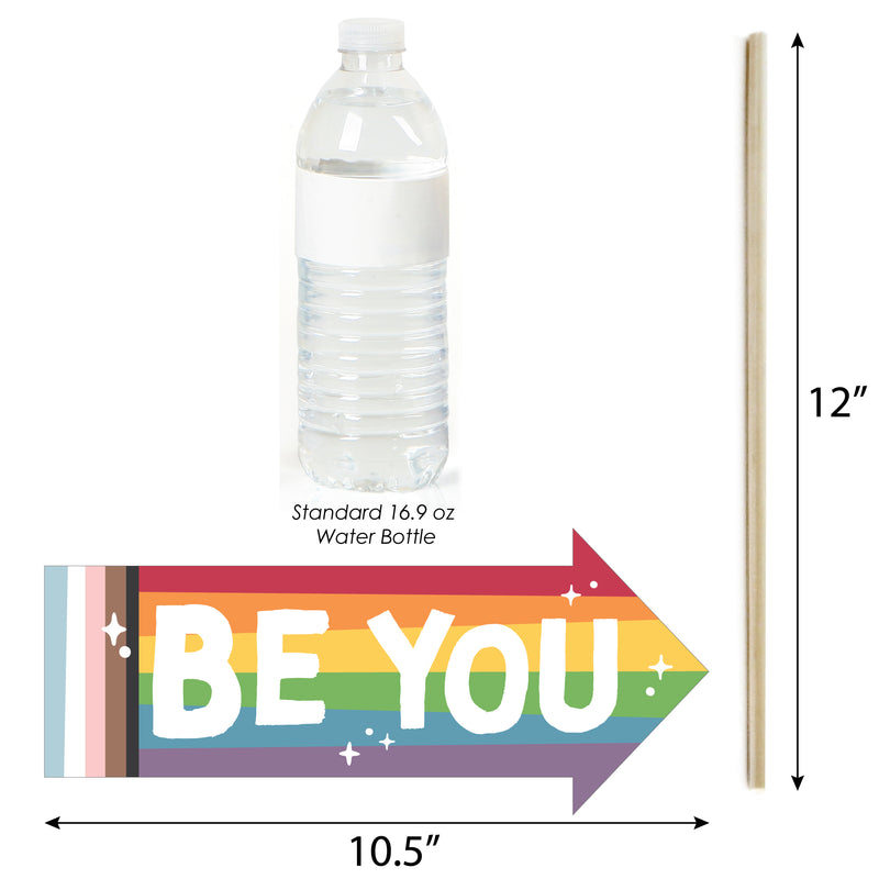The perfect photo booth begins with fabulous photo booth props. Our printed and cut kit will help you easily create fun party photos at your next Rainbow LGBTQIA+ Pride Party. This So Many Ways to Be Human prop kit comes with 10 pieces and is ready for quick assembly. Simply add the included prop kit sticks to each piece, attaching with the included clear stickers, and display alongside a fun photo booth backdrop. Your friends and family will love the fun photos they will create with this amazing 10 piece So Many Ways to Be Human Photo Booth Prop Kit.