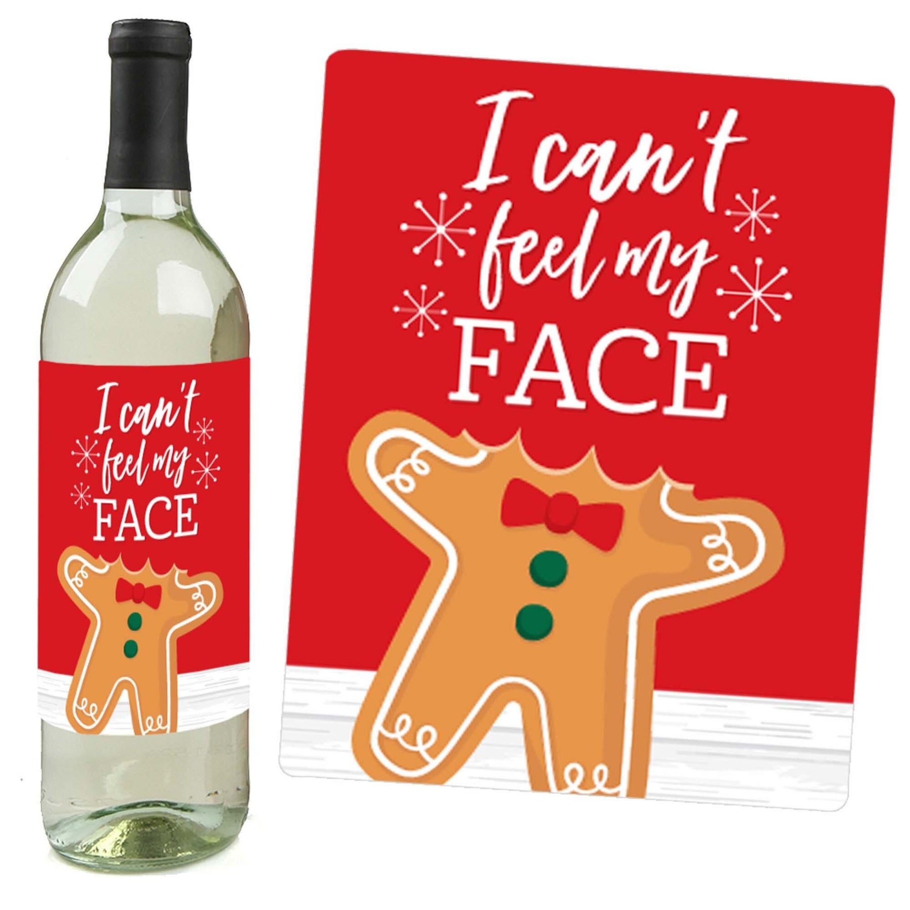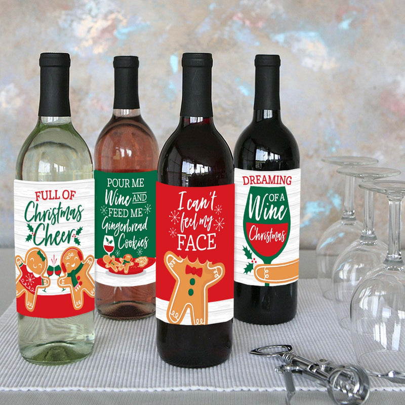 Gingerbread Christmas - Gingerbread Man Holiday Party Wine Bottle Label Stickers:
