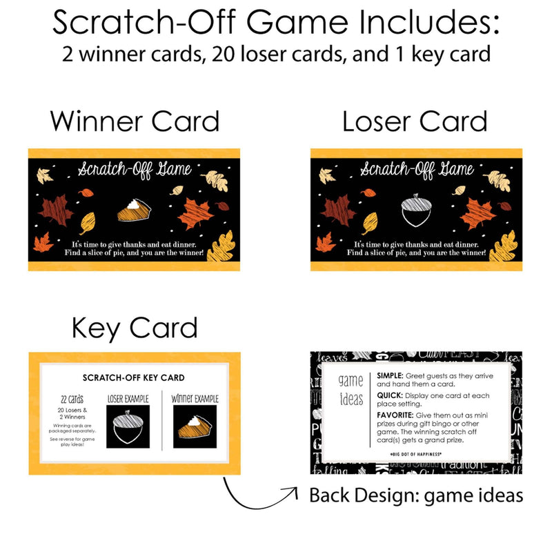 FAVORITE: Give them out as mini prizes during Thanksgiving party gift bingo or other games. The winning scratch off card(s) gets a grand prize.