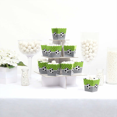 Our GOAAAL! - Soccer candy boxes are a DIY party planner's dream: impressively designed, colorfully themed, and the perfect size for a variety of small candies! Your candy buffet or party tables will be so impressive. Each candy box is printed on premium-grade satin paper with a photo-like shine that is made in the USA, and will match your GOAAAL! - Soccer - Baby Shower or Birthday Party theme perfectly! The top of these die-cut boxes are decoratively cut. Add a stylish yet whimsical touch to your party's candy station with our GOAAAL! - Soccer candy boxes.