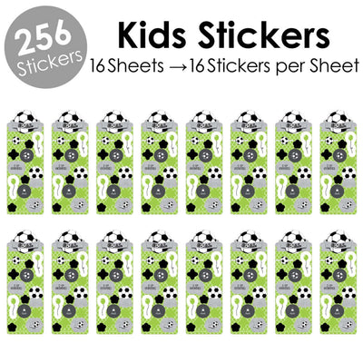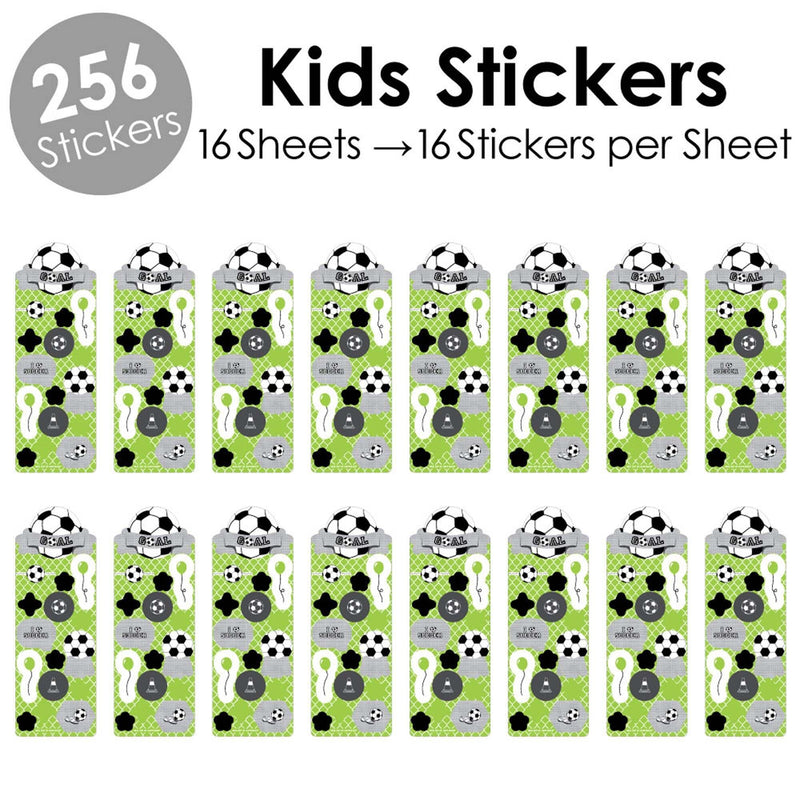 GOAAAL! - Soccer Kids Stickers include 16 matching sticker sheets with 16 easy-to-peel stickers that can be used many ways. Add sticker sheets to goodie bags as party favor at a GOAAAL! - Soccer birthday party or baby shower, use to decorate water bottles, classroom arts and crafts, sealing envelopes, and many other cool sticker ideas. Kids will have fun being creative with the many uses of fun GOAAAL! - Soccer Stickers.
