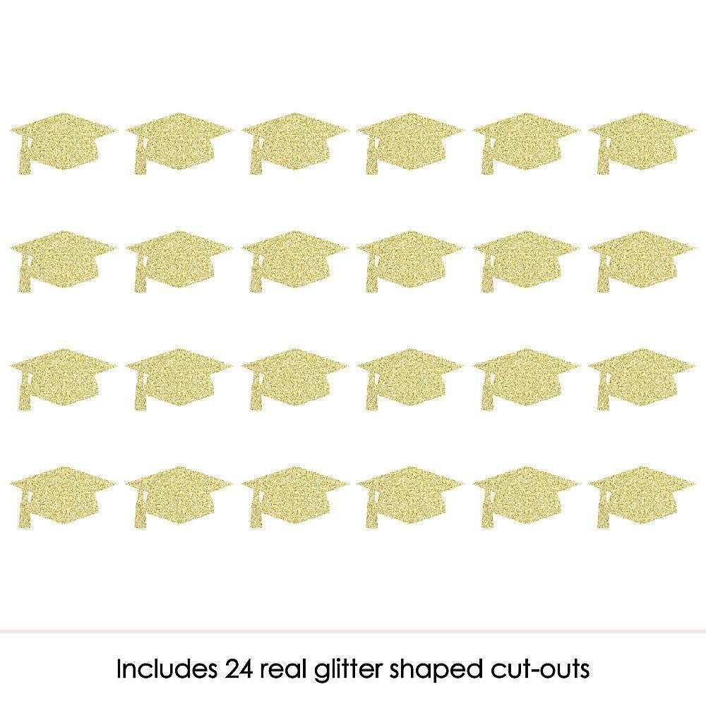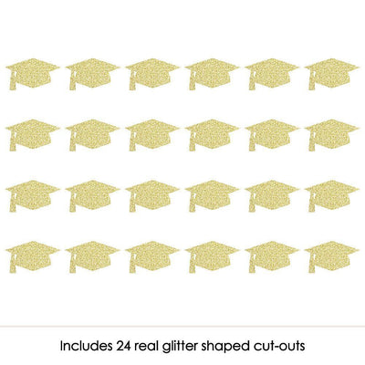Gold Glitter Grad Cap - No-Mess Real Gold Glitter Cut-Outs - Graduation Party Confetti: