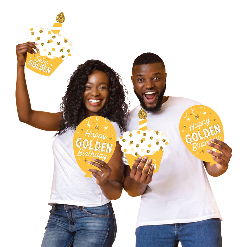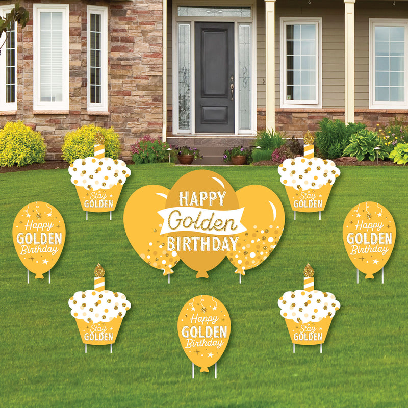 Golden Birthday - Happy Birthday Party Yard Signs - Set of 8