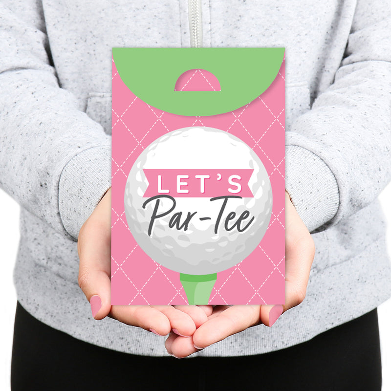 From small treats to golf-themed trinkets and gifts, thrill your guests with the Golf Girl Party Goodie Bags! Ideal for your Pink Baby Shower or Birthday Party, these party loot bags measure to be 4.75” long x 2.5” wide x 7” tall and will certainly be a delight at your celebration. The Golf Girl party bags come in a set of 12 and are professionally printed double-sided on sturdy cardstock paper with some easy DIY assembly required. Each favor bag includes creased lines and numbered tabs for easy folding. To close the bag, fold over the top flap and insert the tab inside the slit to secure it shut. Packaging will also include assembly instructions. Fill these swag bags with small surprises inside and place them at your dessert table for guests to grab and take home. Make your celebration complete when you delight your guests with the Golf Girl Party Goodie Bags.