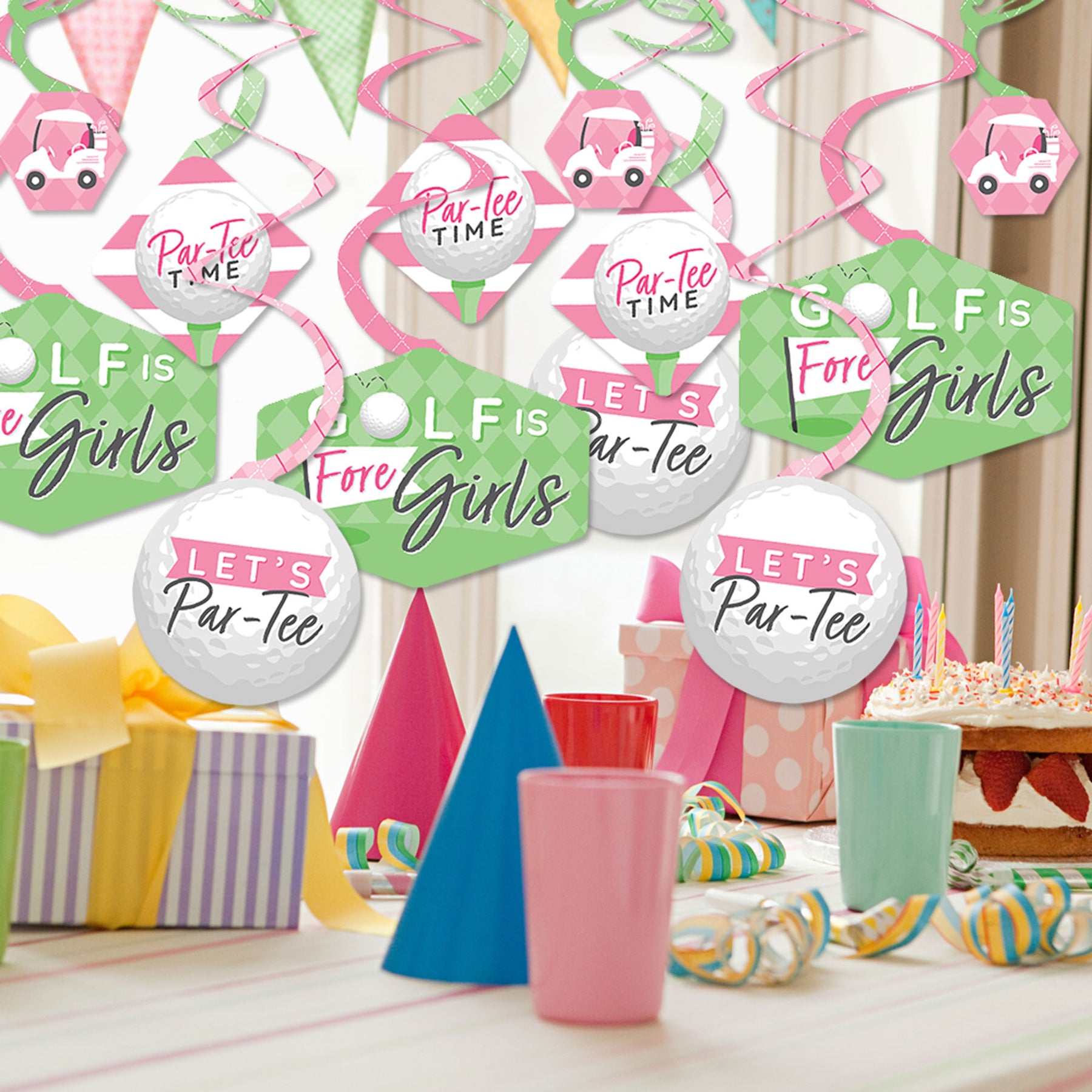 Golf Girl - Pink Baby Shower or Birthday Party Hanging Decor - Party Decoration Swirls - Set of 40: