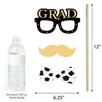 The perfect photo booth begins with fabulous photo booth props. Our printed and cut kit will help you easily create fun graduation party photos at your graduation party. This Graduation party photo booth props kit comes with 20 pieces, ready for quick assembly. Simply add the included sticks to each prop, attaching with the included clear stickers, and display alongside a fun photo booth backdrop. Your party guests will love the mustaches, bowties, lips, glasses, hats and talk bubbles!