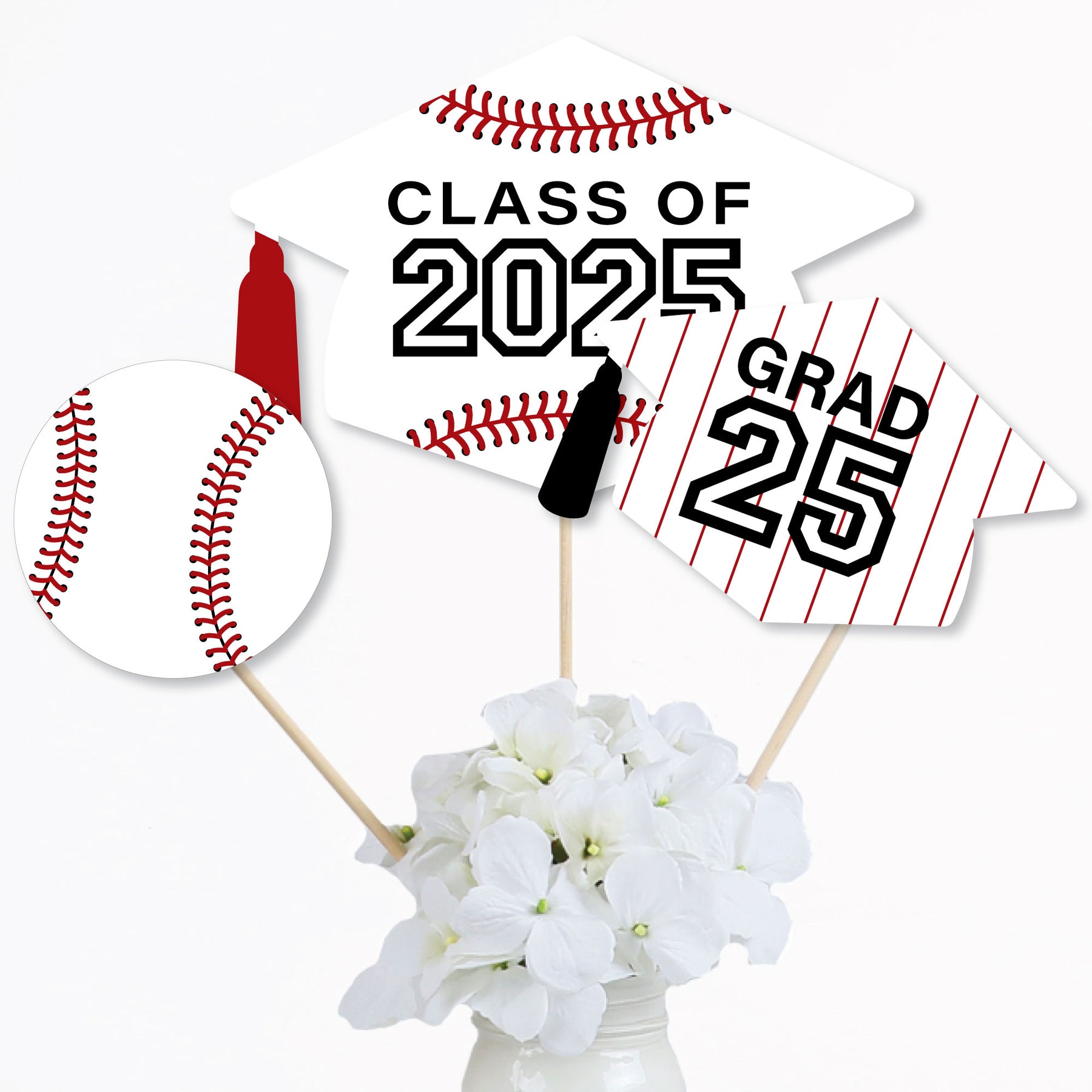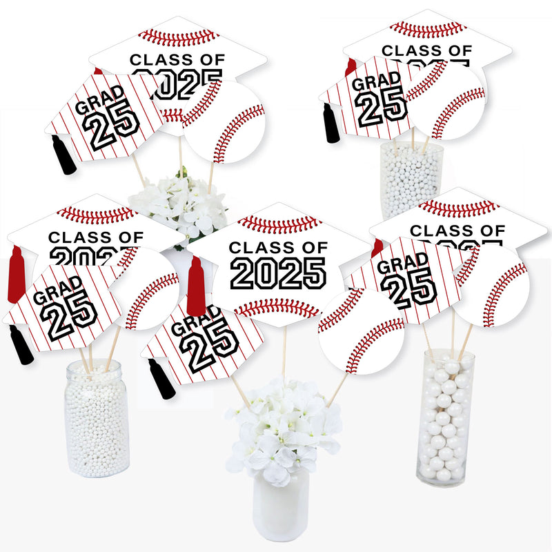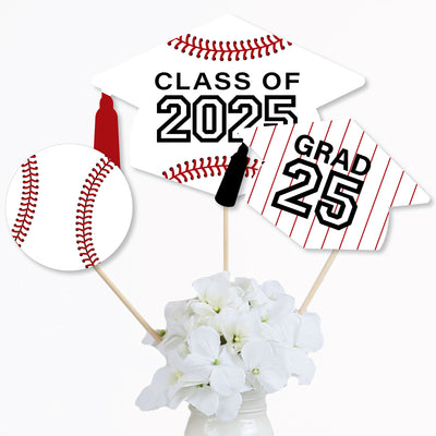 Bring your Baseball party theme to all areas of the grad celebration with Grad Baseball Table Toppers. Each heavy-duty cardstock paper cutout quickly attaches to the included sticks to create centerpiece sticks that can be used in vases or flower arrangements at all your party tables. You can even add them to candy jars at your goodie table! Grad Baseball centerpiece sticks may also be used as photo booth props. You will love how versatile this fun party supply is while your guests will adore seeing them throughout your party venue.